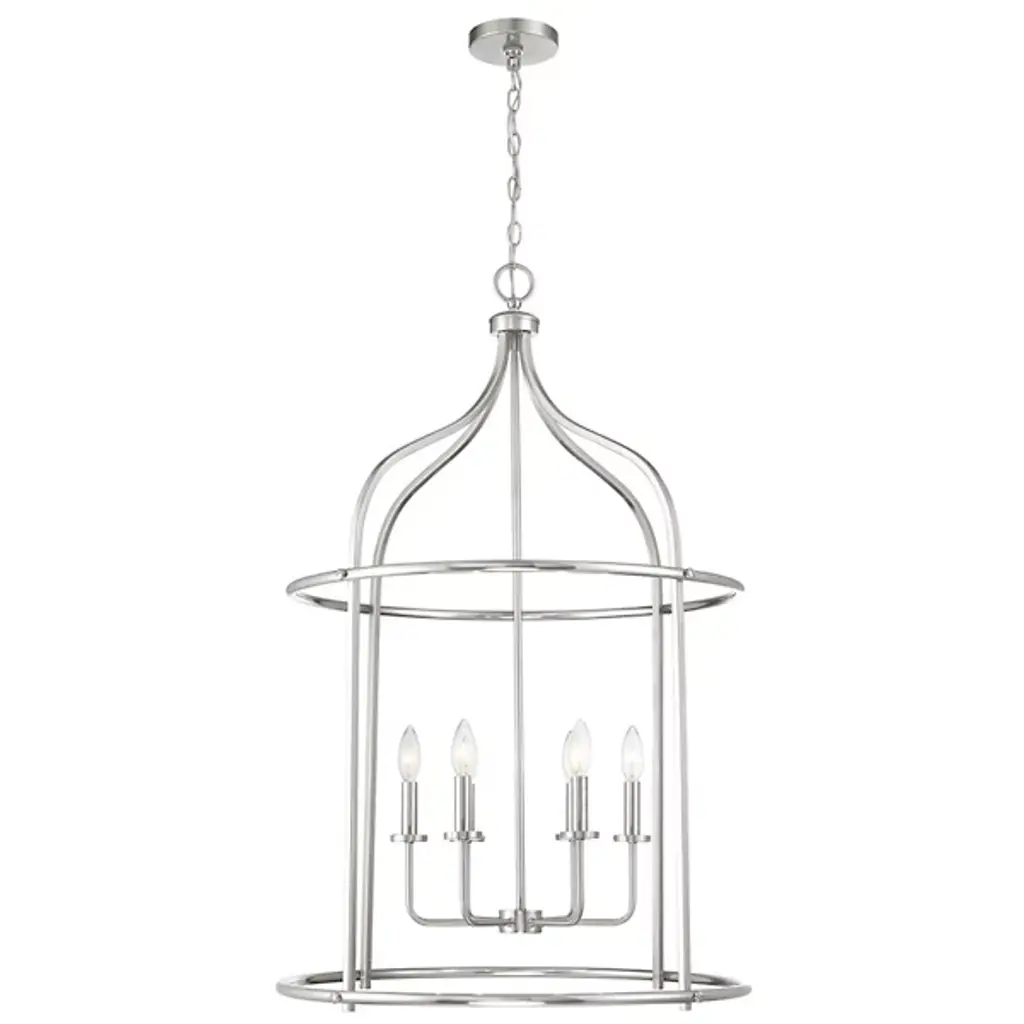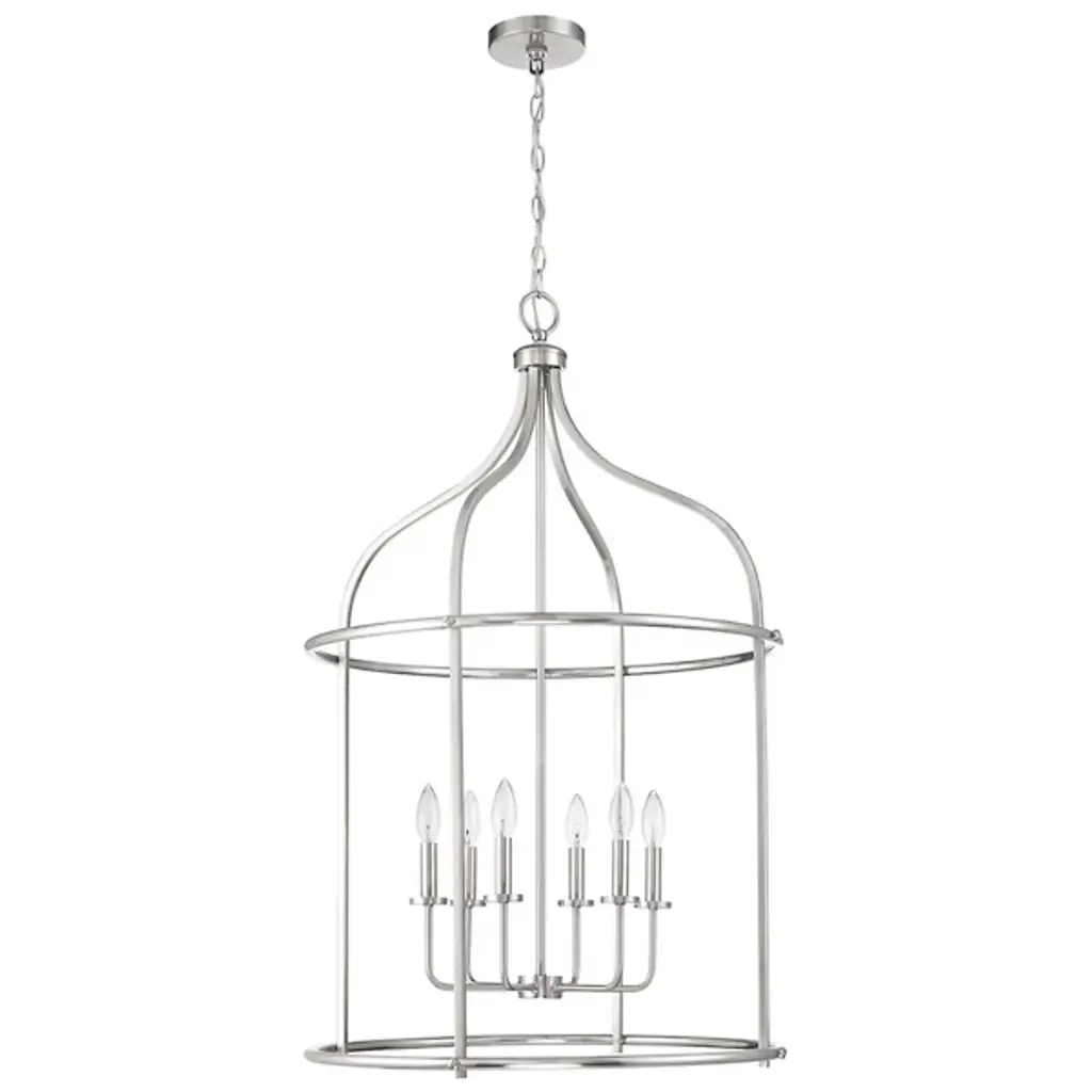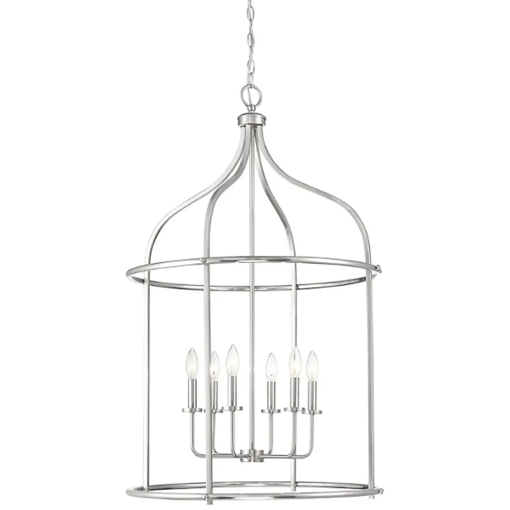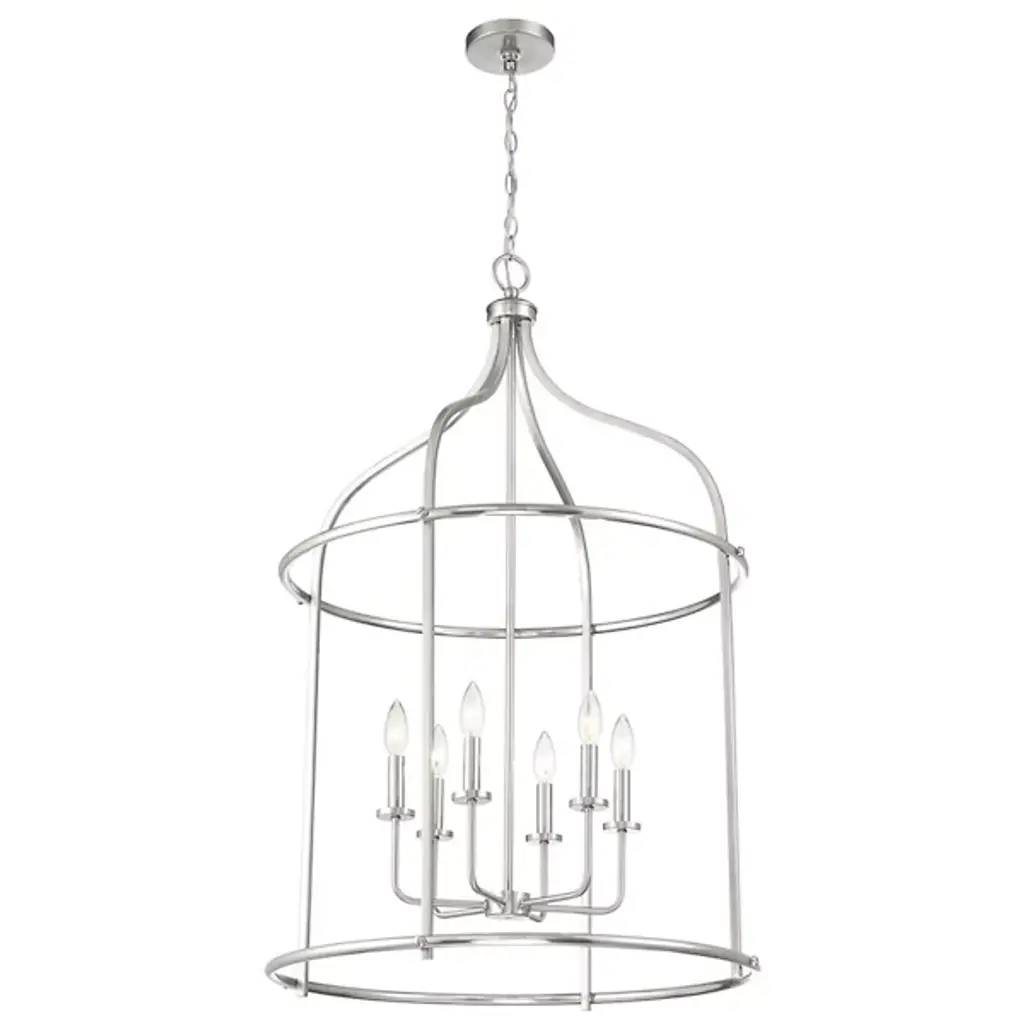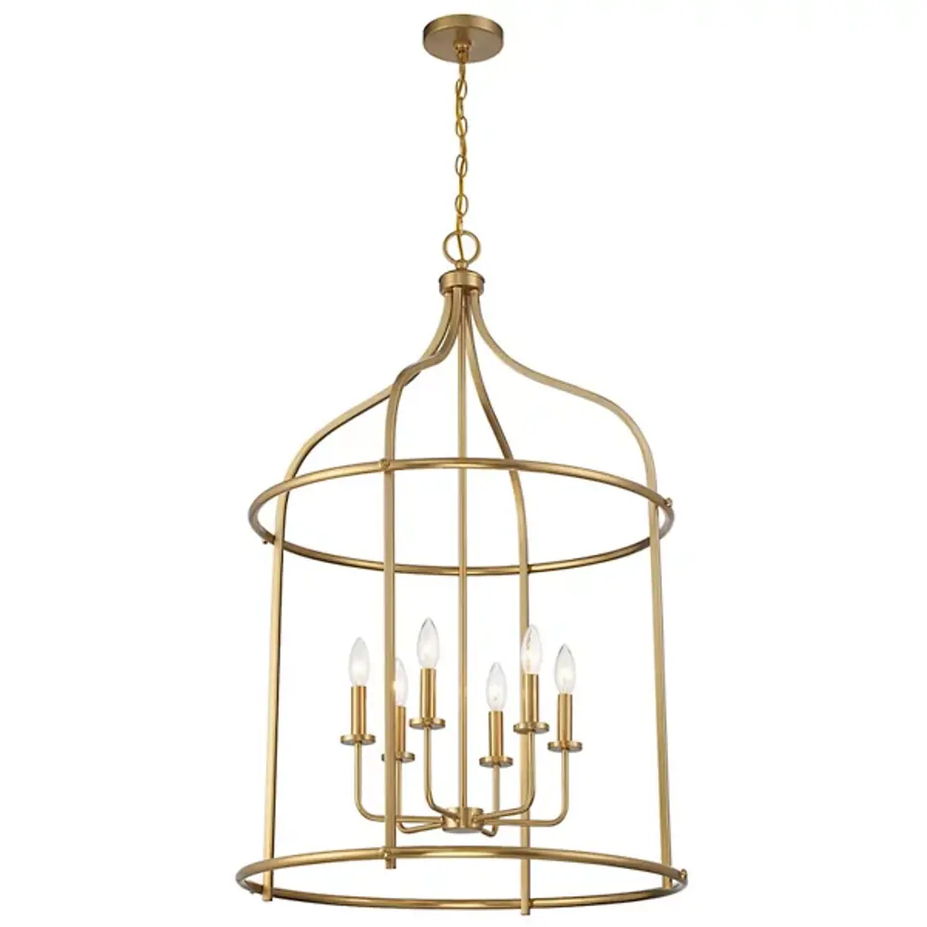 The Brookstone Pendant from Savoy House is a striking example of transitional style. It features an elegant, simple open cage lantern-style design with a warm brass finish. This fixture is made from durable metal, ensuring both style and longevity. The open lamping is perfect for illuminating large spaces like entryways. Its understated elegance and substantial size make it a bold yet refined choice, blending traditional and contemporary elements with ease.