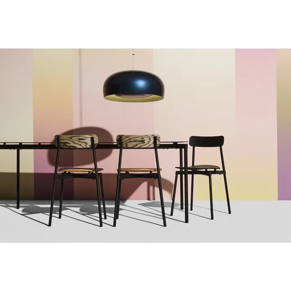 Petite Friture's Brush pendant light has a charming rounded silhouette that brings a friendly and cozy atmosphere to the room. With its timeless design, seamlessly blending geometric and organic elements the ceiling lamp will draw the eye in any setting, both in homes and public spaces. The vivid shade of the Brush pendant is achieved by a special baking technique in which the pigments of the colors react in the process to give the aluminum shade a metallic sheen. The luminaire's light source has been placed behind an anti-glare shade that directs the light towards the white inside, giving the light a soft, neutral tone.