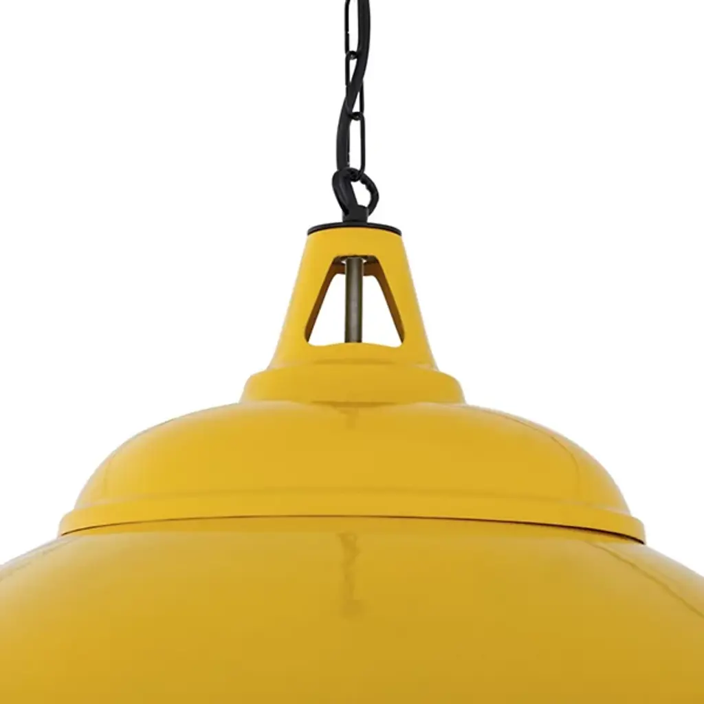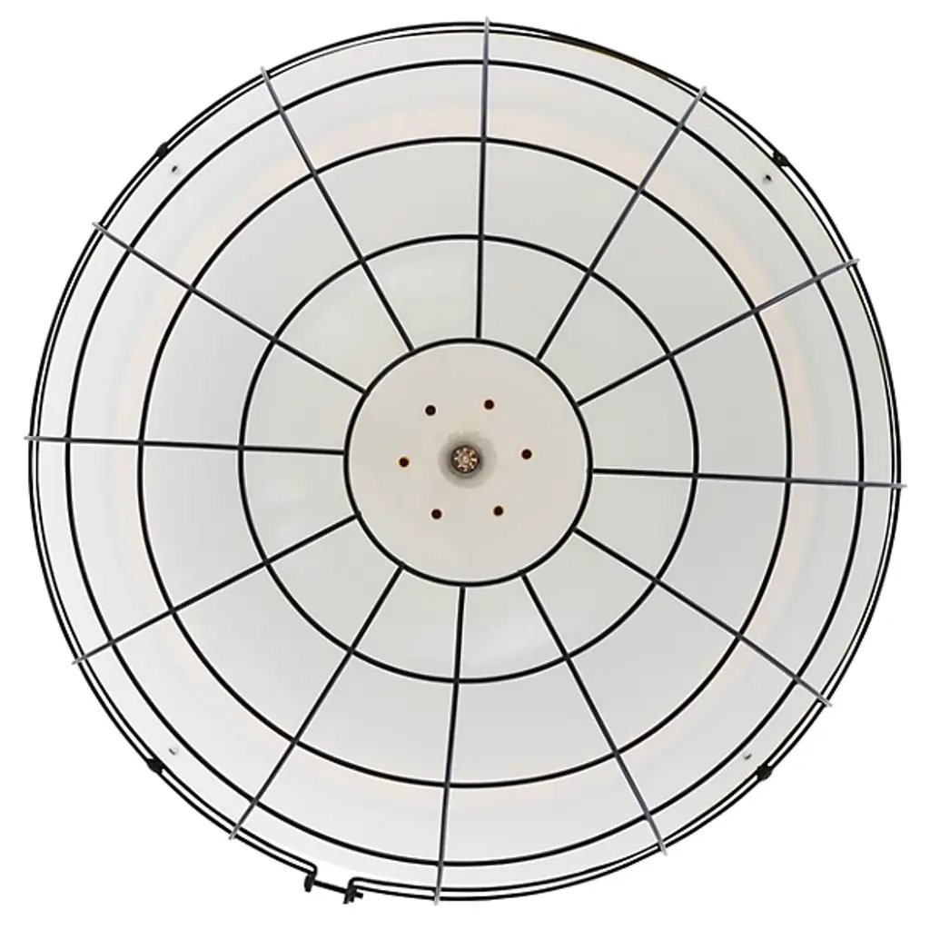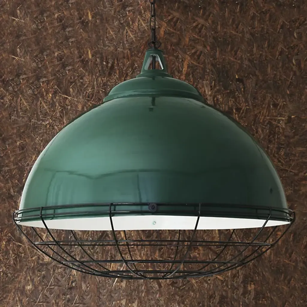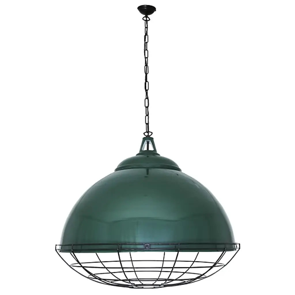 The Brussels Pendant from Mullan Lighting uses a grid-shaped cage to show off industrial style meeting straightforward design. It’s made in Ireland and places a strong lamp inside a dome-shaped metal shade with a smooth outside and pale interior. The light within shines out below, accompanied by reflected glow from the sleek sides, while the cage adds a slender pattern of shadows amid the even downlight. Ideal for high ceilings, whether residential or commercial, the large lamp hovers on a slender chain, spreading a focused ambiance below.