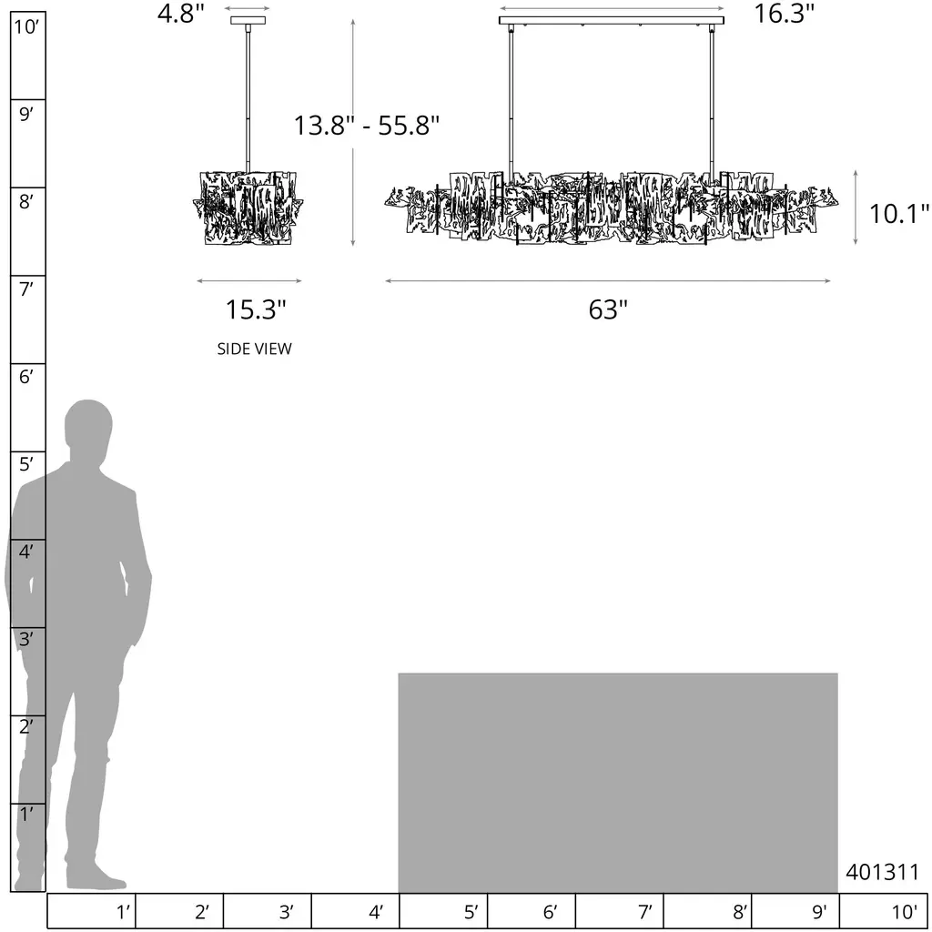 At over 5 ft in breadth, this large Brutus Pendant makes a bold statement in any space. The Brutalism movement of the '60s and '70s is apparent in this pendant design. Designer Jason Hancock created a complex metal puzzle whose pieces are combined to create a unique, one-of-a-kind lighting fixture. Part of ART + ALCHEMY by Hubbardton Forge.