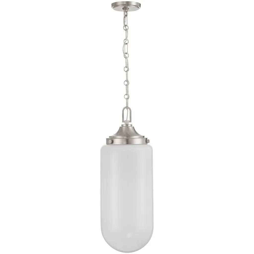 Decorate your space with the Savoy House Bryant 3-light pendant. Its understated structure allows the shade of beautiful, eye-catching strie glass to take center stage. This look is great when used solo or in groupings. Satin Nickel finish. 24.75" in height and 9" in width. Uses three standard size bulbs of up to 60 watts per bulb. Bulbs not included.