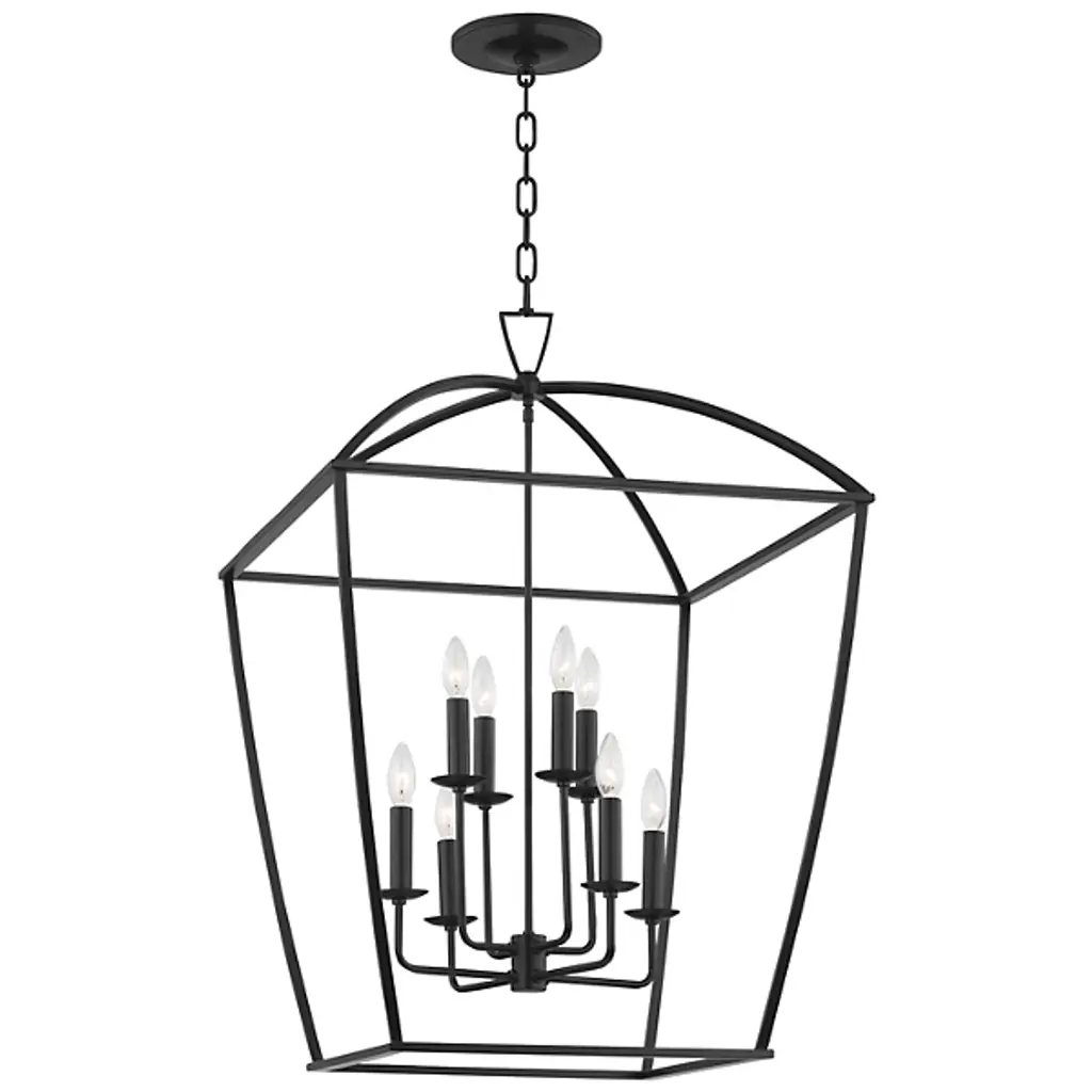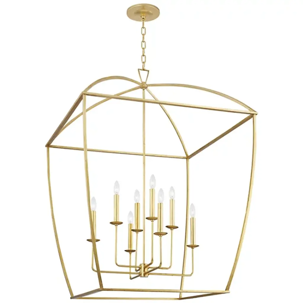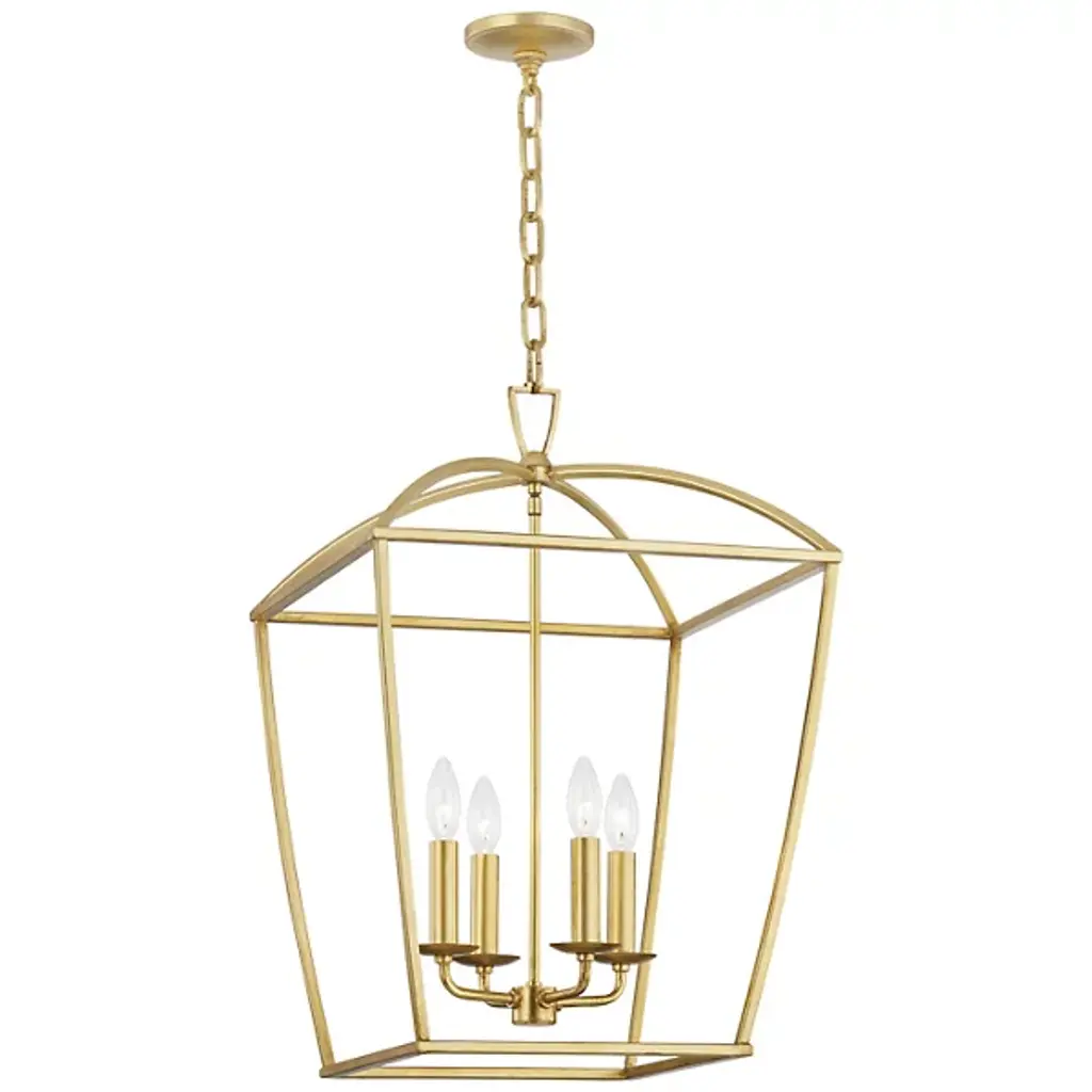 Add an elegant accompaniment to your inside spaces with the Bryant Pendant from Hudson Valley Lighting. A tasteful transitional piece, it starts with a sleek ceiling mount and chain that suspends a small, candelabra-style fixture inside an open steel frame. The upper section is curved, while the lower frame angles out to meet it, adding a reassuring strength to the otherwise open sockets. The lamping is damp-listed, meaning installation is a breeze throughout the home.