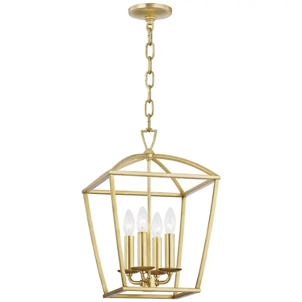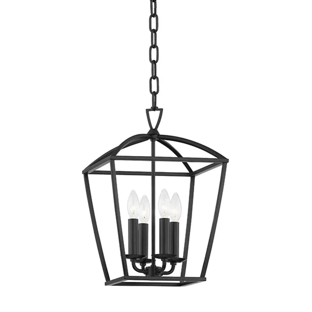 Add an elegant accompaniment to your inside spaces with the Bryant Pendant from Hudson Valley Lighting. A tasteful transitional piece, it starts with a sleek ceiling mount and chain that suspends a small, candelabra-style fixture inside an open steel frame. The upper section is curved, while the lower frame angles out to meet it, adding a reassuring strength to the otherwise open sockets. The lamping is damp-listed, meaning installation is a breeze throughout the home.