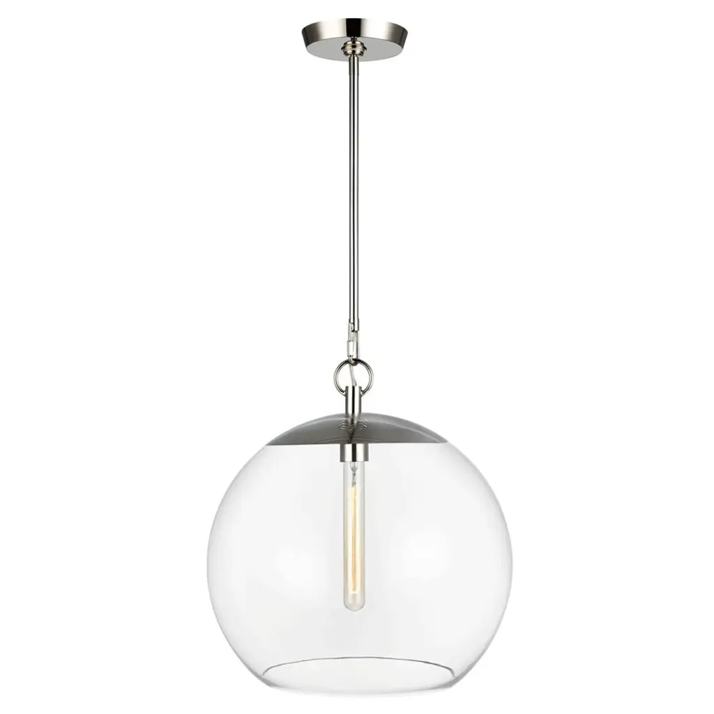 Sleek, shiny and resembling a soap bubble, the SONNEMAN Lighting Bubbles Globe Pendant makes a truly clean, retro addition to contemporary spaces. The shade--a glistening globe of glass--appears to be blown directly out of the pipe-like metal shade holder and socket, finished in a gleamingly complementary Polished Nickel. Available in three sizes.