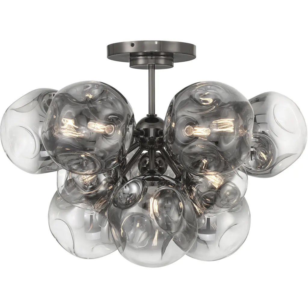Tone-setting like a popped bottle of bubbly, the Bubbly 06 Pendant from Rosie Li Studio excites while off or on in a clustered design inspired by soap bubbles and the botryoidal hematite mineral. Ditching traditional design cues, Rosie Li Studio creates science, math, and nature-infused pieces out of pared-down forms. The globe shape unites this piece, starting with a clustered brass body that visually appears ready to burst. The different sizes of the globes seduce with a sense of depth. Bright lamping pairs with handblown glass all around to create a warmth-filled atmosphere. The light accentuates the piece’s light-hearted silhouette.
