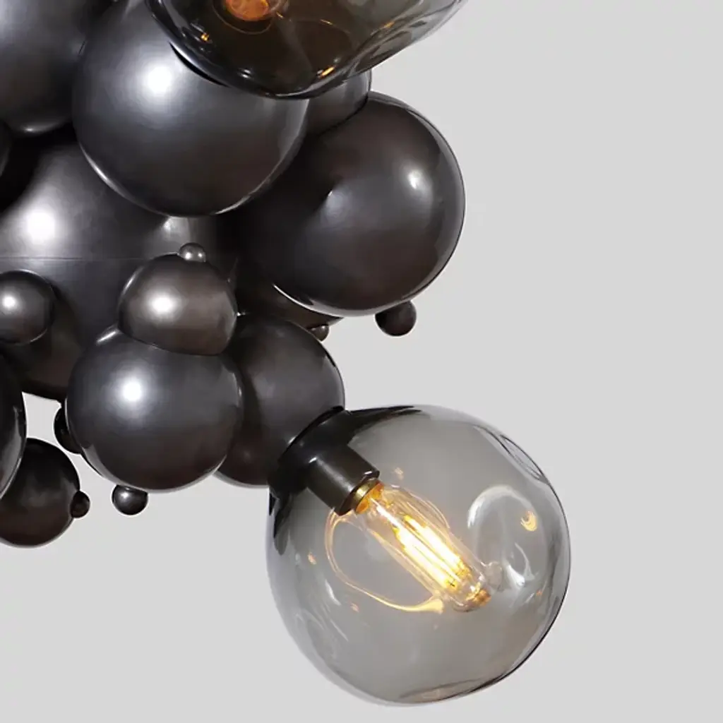 Tone-setting like a popped bottle of bubbly, the Bubbly 06 Pendant from Rosie Li Studio excites while off or on in a clustered design inspired by soap bubbles and the botryoidal hematite mineral. Ditching traditional design cues, Rosie Li Studio creates science, math, and nature-infused pieces out of pared-down forms. The globe shape unites this piece, starting with a clustered brass body that visually appears ready to burst. The different sizes of the globes seduce with a sense of depth. Bright lamping pairs with handblown glass all around to create a warmth-filled atmosphere. The light accentuates the piece’s light-hearted silhouette.