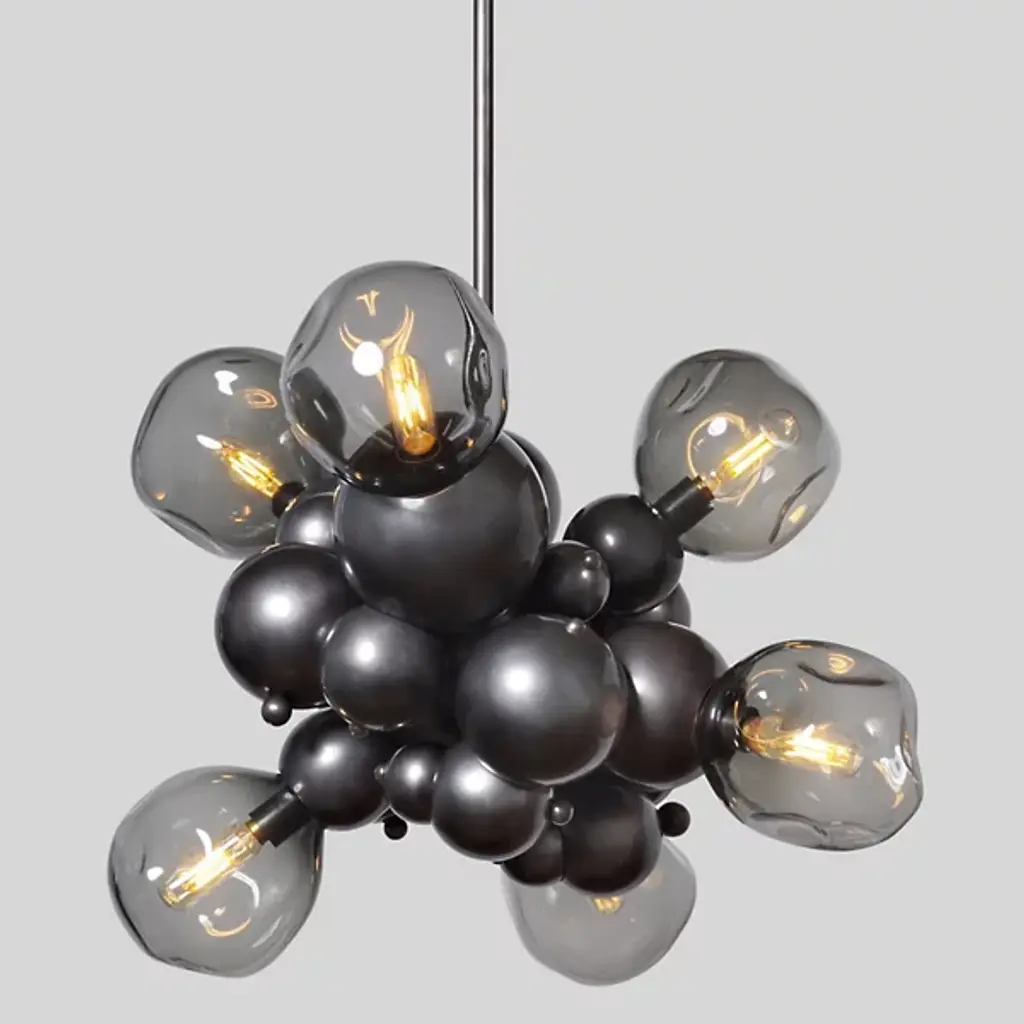 Tone-setting like a popped bottle of bubbly, the Bubbly 06 Pendant from Rosie Li Studio excites while off or on in a clustered design inspired by soap bubbles and the botryoidal hematite mineral. Ditching traditional design cues, Rosie Li Studio creates science, math, and nature-infused pieces out of pared-down forms. The globe shape unites this piece, starting with a clustered brass body that visually appears ready to burst. The different sizes of the globes seduce with a sense of depth. Bright lamping pairs with handblown glass all around to create a warmth-filled atmosphere. The light accentuates the piece’s light-hearted silhouette.