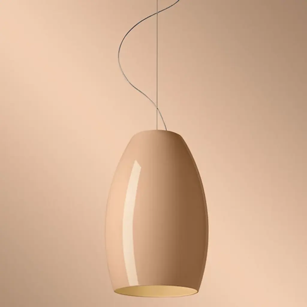 Contemporary aesthetic radiates from the Buds 1 Pendant by Foscarini. This stylish pendant light is furnished with a curved Hand Blown Glass shade and features a glossy, sleek finish. When illuminated, a downward light is projected from the fixture, thus making it ideal for placement overlooking dining room tables, entryways, or open living spaces.