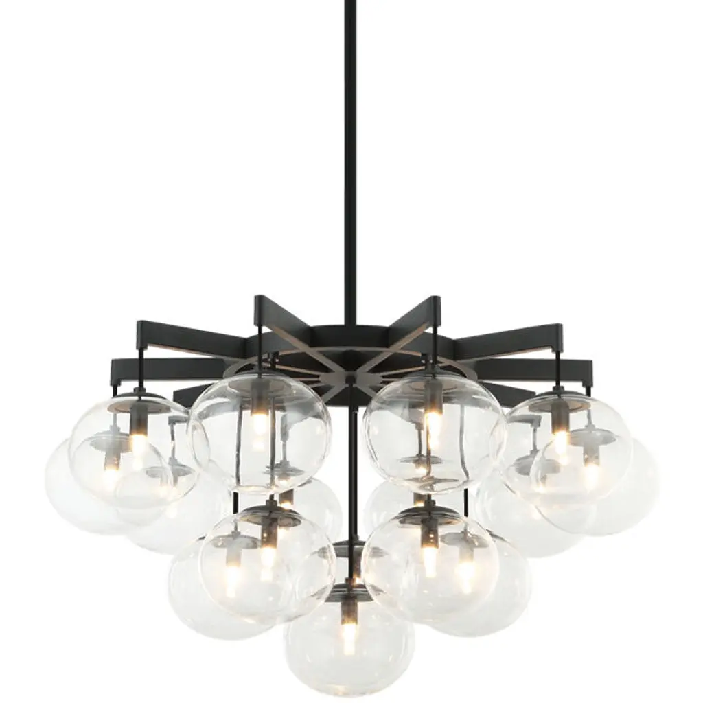 16 LT 32" DIAM "BULBUS" MATTE BLACK/CEILING CLEAR GLASS CHANDELIER LED G9 LED 10W