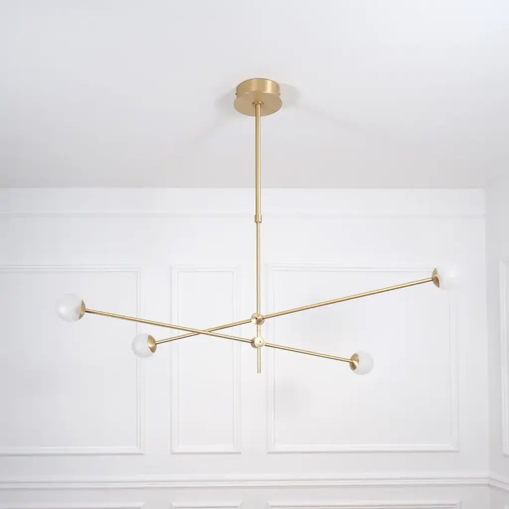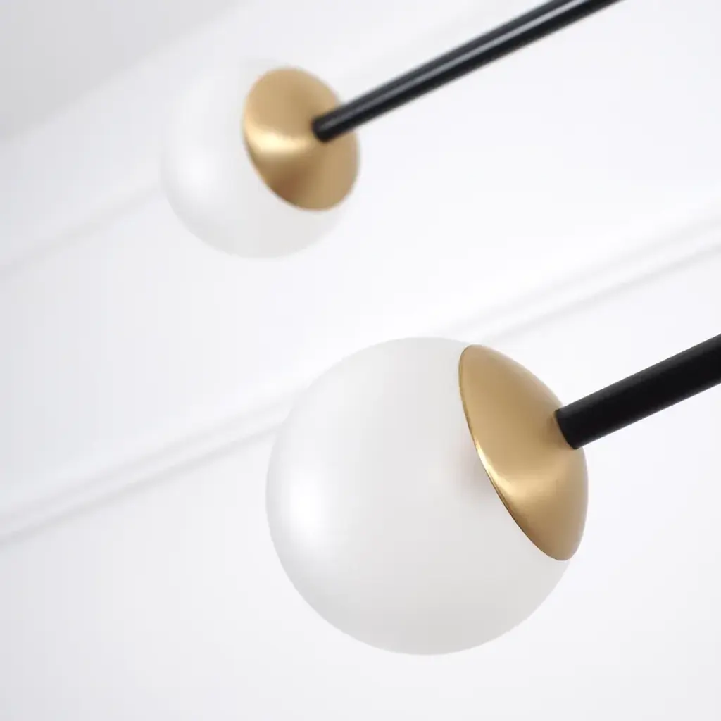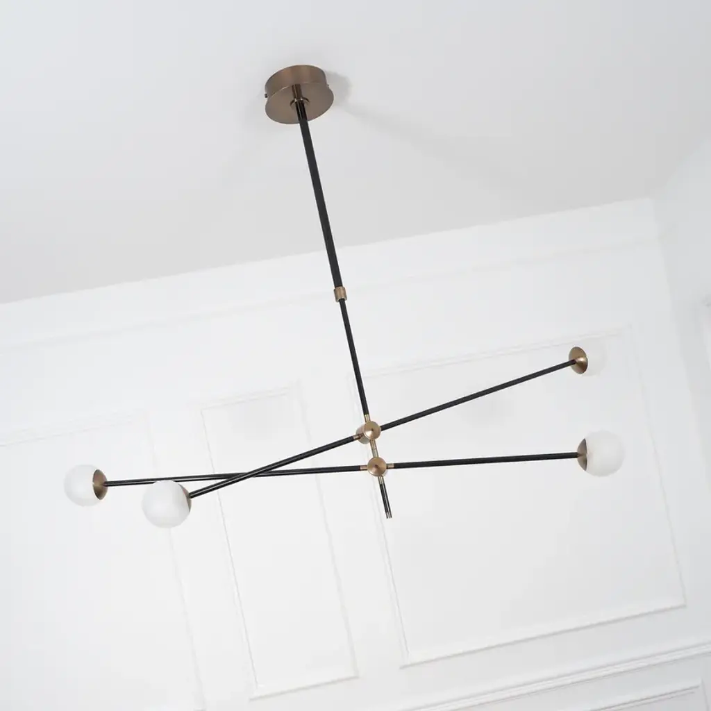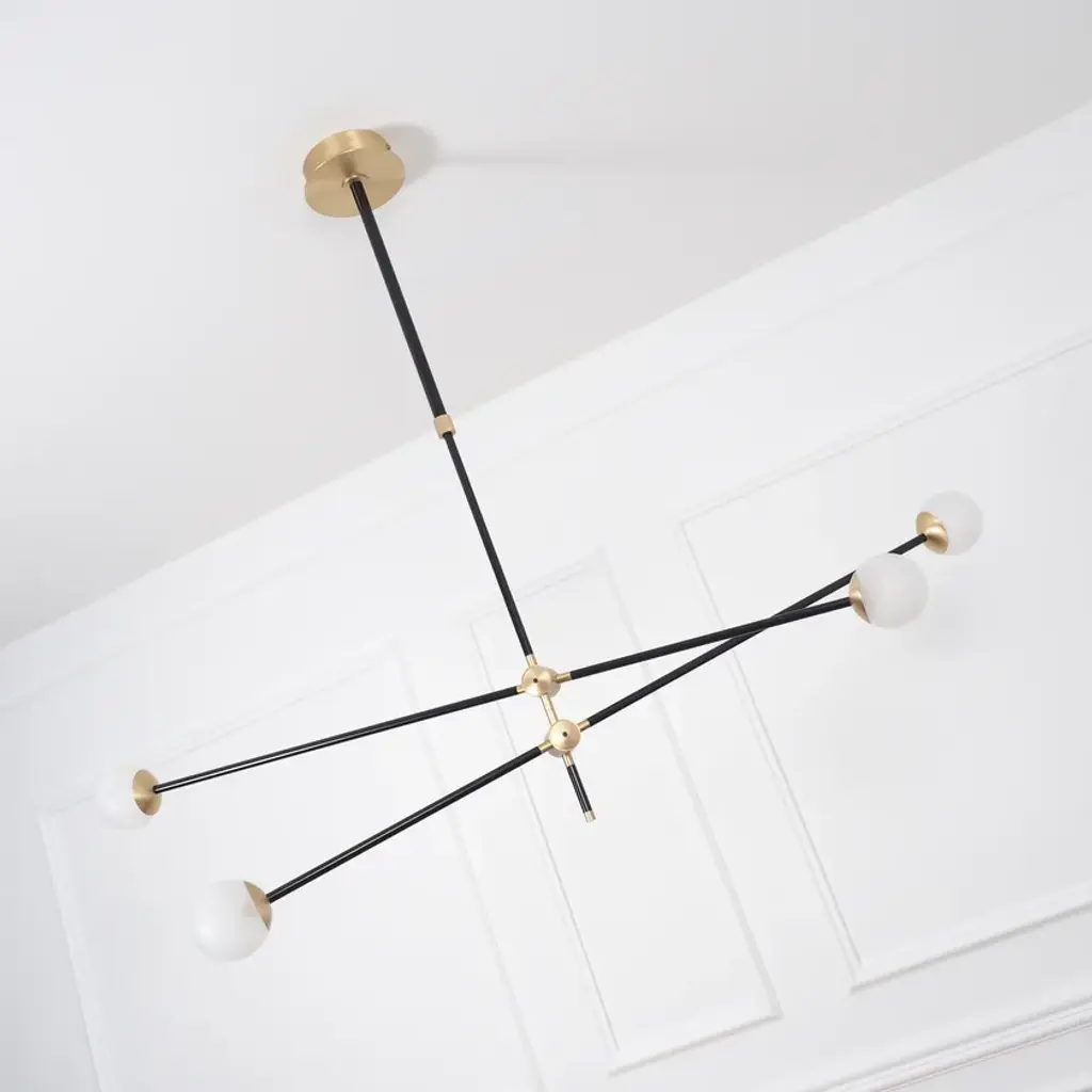 BULLARUM SI-4 is a suspension lamp with brass or copper body and blown glass spheres.HALOGEN ILLUMINATION: (120V / 240V)Socket : G6,35Bulb : 4 x 35 Watts halogenWattage : 140 WattsLumens : 1600 LumensColor temperature : 2900KEnergy classes : CDimmable : yesLED ILLUMINATION: (120V / 240V)Socket : G4Bulb : 4 x 3,5 Watts LEDWattage : 14 WattsLumens : 1200 LumensColor temperature : 2700-3000KEnergy classes : A+ LEDDimmable : yesTRASFORMERS TYPE:Lightech let 75 12v /230-240v (eu)Lightech let 75 12v /110-120v (us)Toroid-Matic 30w /90-264v (led)MATERIALS:Brass or copper body, hand - blowen glassFINISHES:Brass - polished, brashed, antiqueCopper - polished, brashedCromeBlack or white (powder coated)Order options the all finishes, and RAL colorsCERTIFICATION:CE certification of european conformityUL approved componentsSimple, elegant forms and shapes, the finest quality of materials and workmanship. This is how best to describe Intueri’s Bullarum Collection.Since 2012 we are constantly improving this lighting family to offer the highest quality. From the perfectly finished rodes to the last screw all the products are designed, produced and assembled by Intueri LightEvery lamp is equipped with a telescopic rod, to adjust it to the perfect height for the fixture.There are 9 unique main finishes and another 9 detail finishes available for every lamp in this collection, so it customizable for the mood of the room where the fixture is going to be mounted.We believe in fast and compact shipping solutions. The lightings are arriving in a compact wooden box which secured not to be damaged through the shipping process. These boxes are compatible with air transport, even in 2 days after production the lamps can arrive anywhere in the globe.At the design table we decided that the lighting has to be easy to assemble, it takes a few minutes after putting it out from the box to mount the fixture.After mounting it, all the joints could be adjusted to accomplish the perfect visual effect.