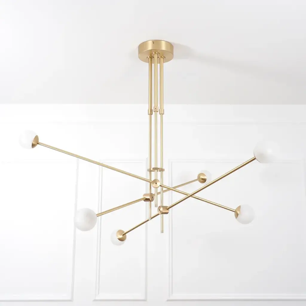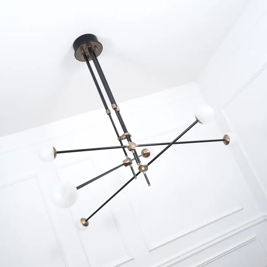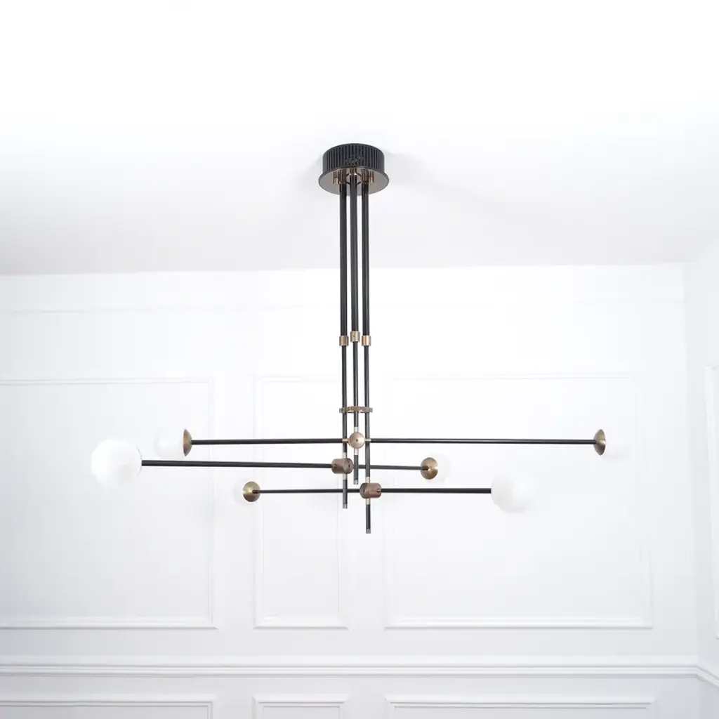 BULLARUM SI-6 is a suspension lamp with brass or copper body and blown glass spheres.HALOGEN ILLUMINATION: (120V / 240V)Socket : G6,35Bulb : 6 x 35 Watts halogenWattage : 210 WattsLumens : 2400 LumensColor temperature : 2900KEnergy classes : CDimmable : yesLED ILLUMINATION: (120V / 240V)Socket : G4Bulb : 6 x 3,5 Watts LEDWattage : 21 WattsLumens : 1800 LumensColor temperature : 2700-3000KEnergy classes : A+ LEDDimmable : yesTRASFORMERS TYPE:Lightech let 75 12v /230-240v (eu)Lightech let 75 12v /110-120v (us)Toroid-Matic 30w /90-264v (led)MATERIALS:Brass or copper body, hand - blowen glassFINISHES:Brass - polished, brashed, antiqueCopper - polished, brashedCromeBlack or white (powder coated)Order options the all finishes, and RAL colorsCERTIFICATION:CE certification of european conformityUL approved componentsSimple, elegant forms and shapes, the finest quality of materials and workmanship. This is how best to describe Intueri’s Bullarum Collection.Since 2012 we are constantly improving this lighting family to offer the highest quality. From the perfectly finished rodes to the last screw all the products are designed, produced and assembled by Intueri LightEvery lamp is equipped with a telescopic rod, to adjust it to the perfect height for the fixture.There are 9 unique main finishes and another 9 detail finishes available for every lamp in this collection, so it customizable for the mood of the room where the fixture is going to be mounted.We believe in fast and compact shipping solutions. The lightings are arriving in a compact wooden box which secured not to be damaged through the shipping process. These boxes are compatible with air transport, even in 2 days after production the lamps can arrive anywhere in the globe.At the design table we decided that the lighting has to be easy to assemble, it takes a few minutes after putting it out from the box to mount the fixture.After mounting it, all the joints could be adjusted to accomplish the perfect visual effect.