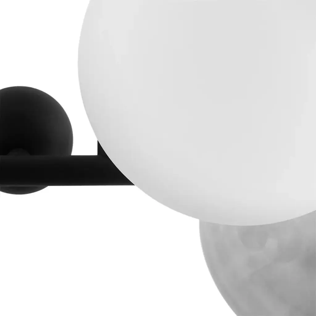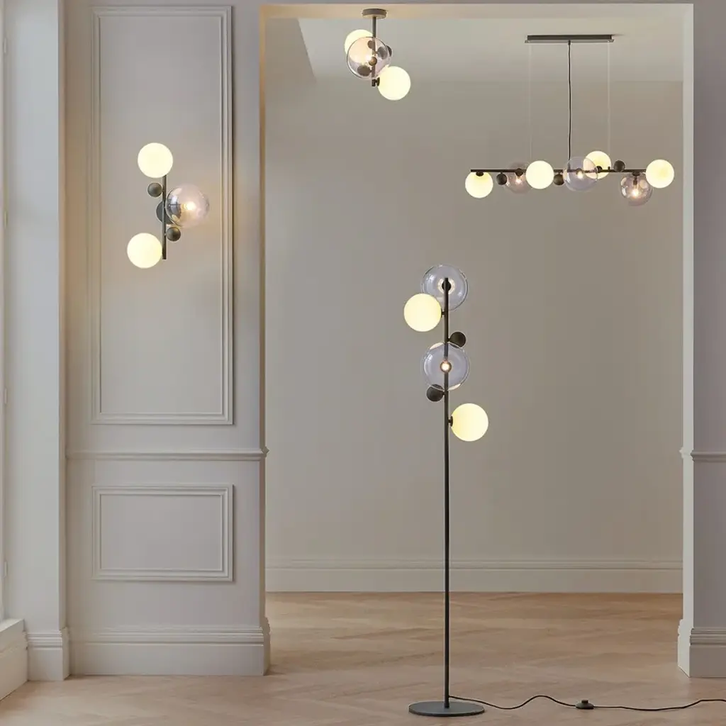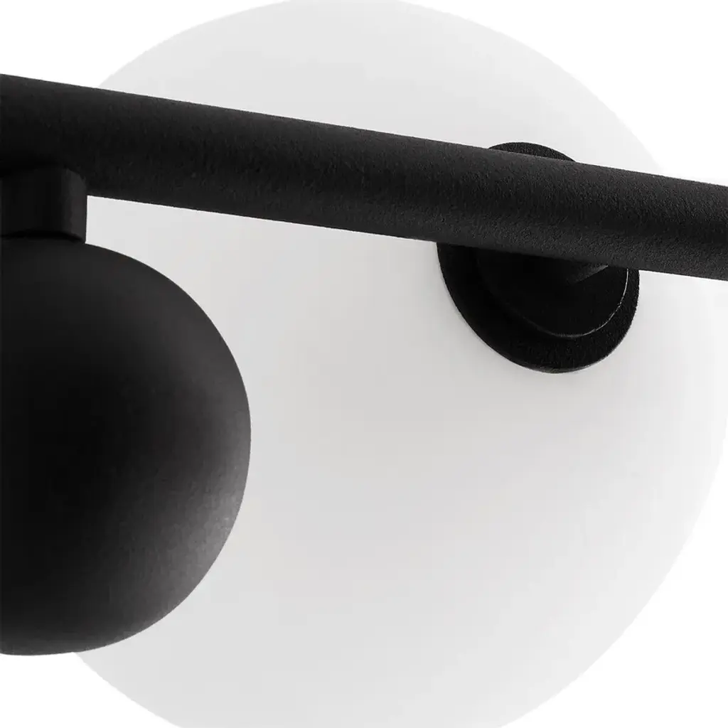 A play of light spheres in balance, poetry and emotion for the Bullesco chandelier that makes smoked glass, opaline and metal dance.Glass and steel with gunmetal epoxy finish + 3 smoked blown glass globes Ø18 cm4 white color opaline globes with matte finish Ø14 cm3 steel spheres Ø6 cmSteel cables adjustable in height and electric cable covered in black fabric7 GU9 lamp holders for 3W bulbs (not supplied)