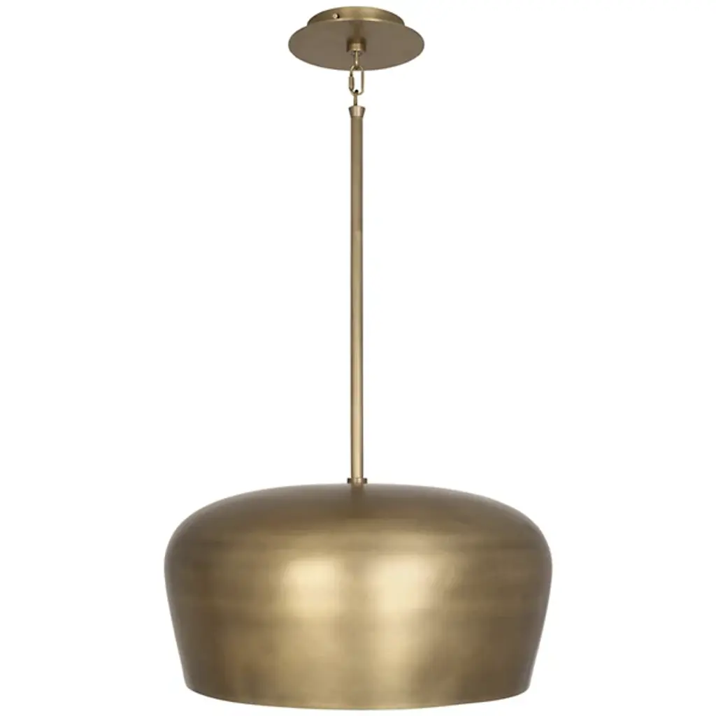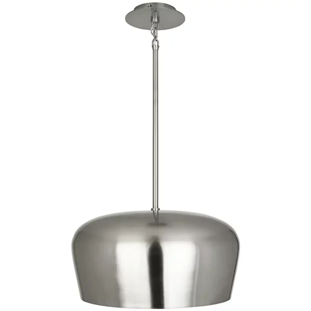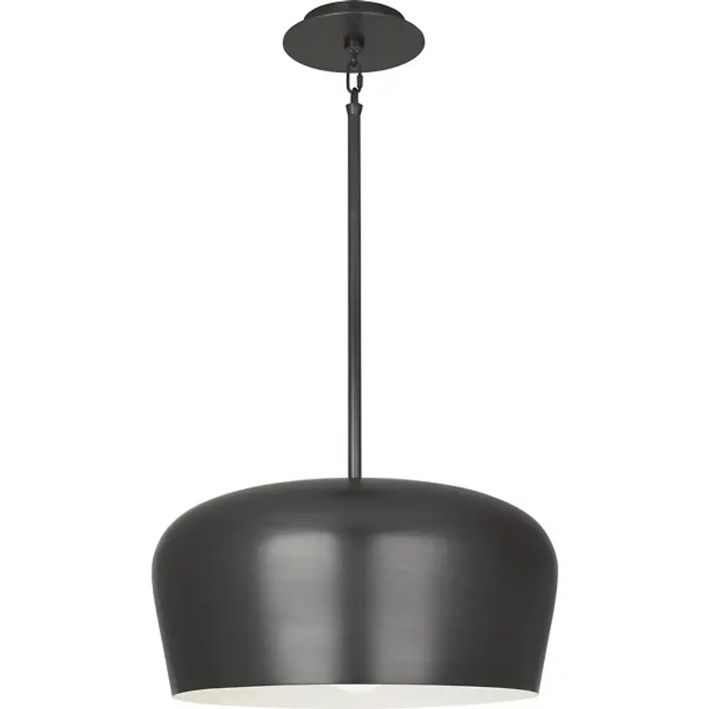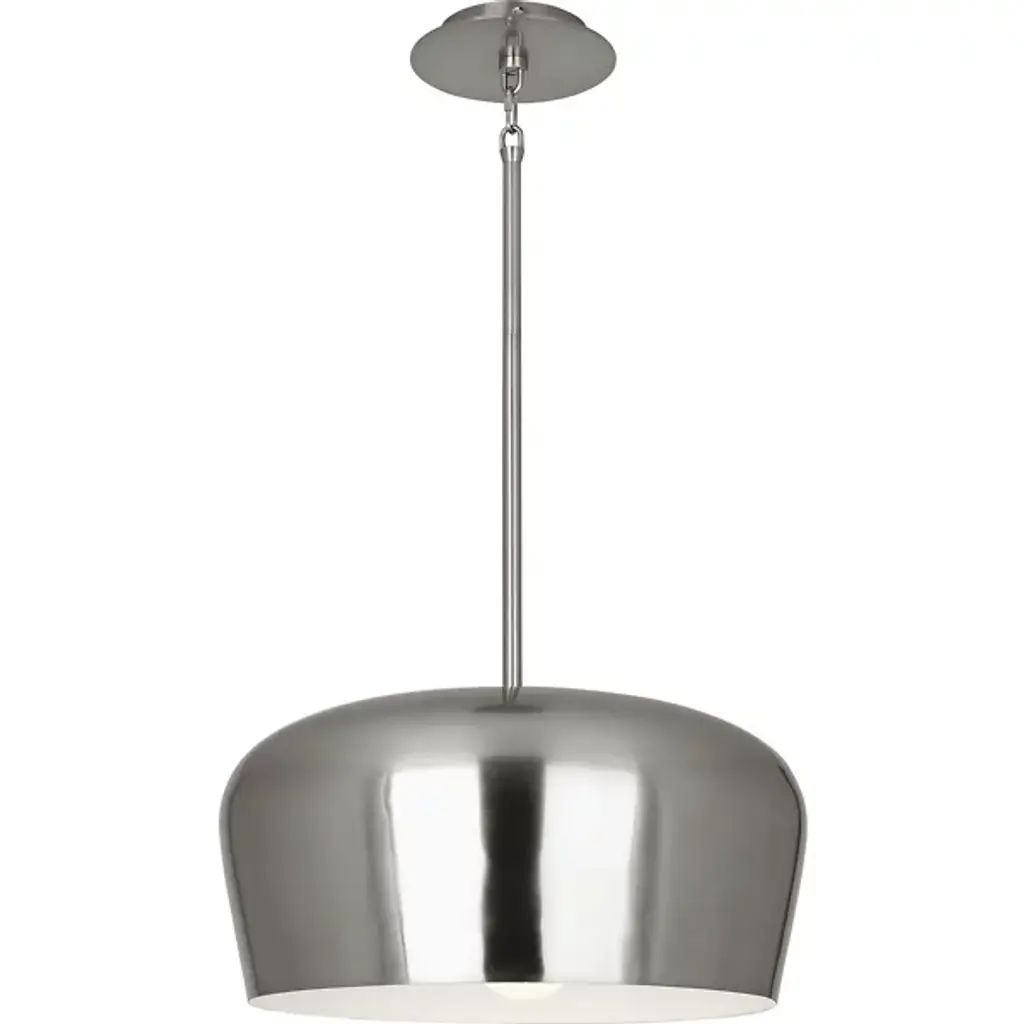 Earning its namesake from its distinctly-shaped shade, the Bumper Pendant by Robert Abbey Lighting is the ideal fixture for contemporary interior living environments. The fixture, created from metal while its cord is finished in a complimenting color scheme for a cohesive look, provides a warm, ambient aura through its use of an incandescent bulb (not included). While the shade sports a sleek, metallic finish on the exterior, the interior is decked out in a painted white to highlight the bulb’s lighting.