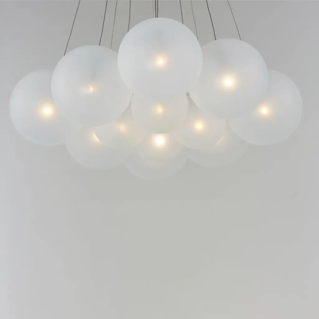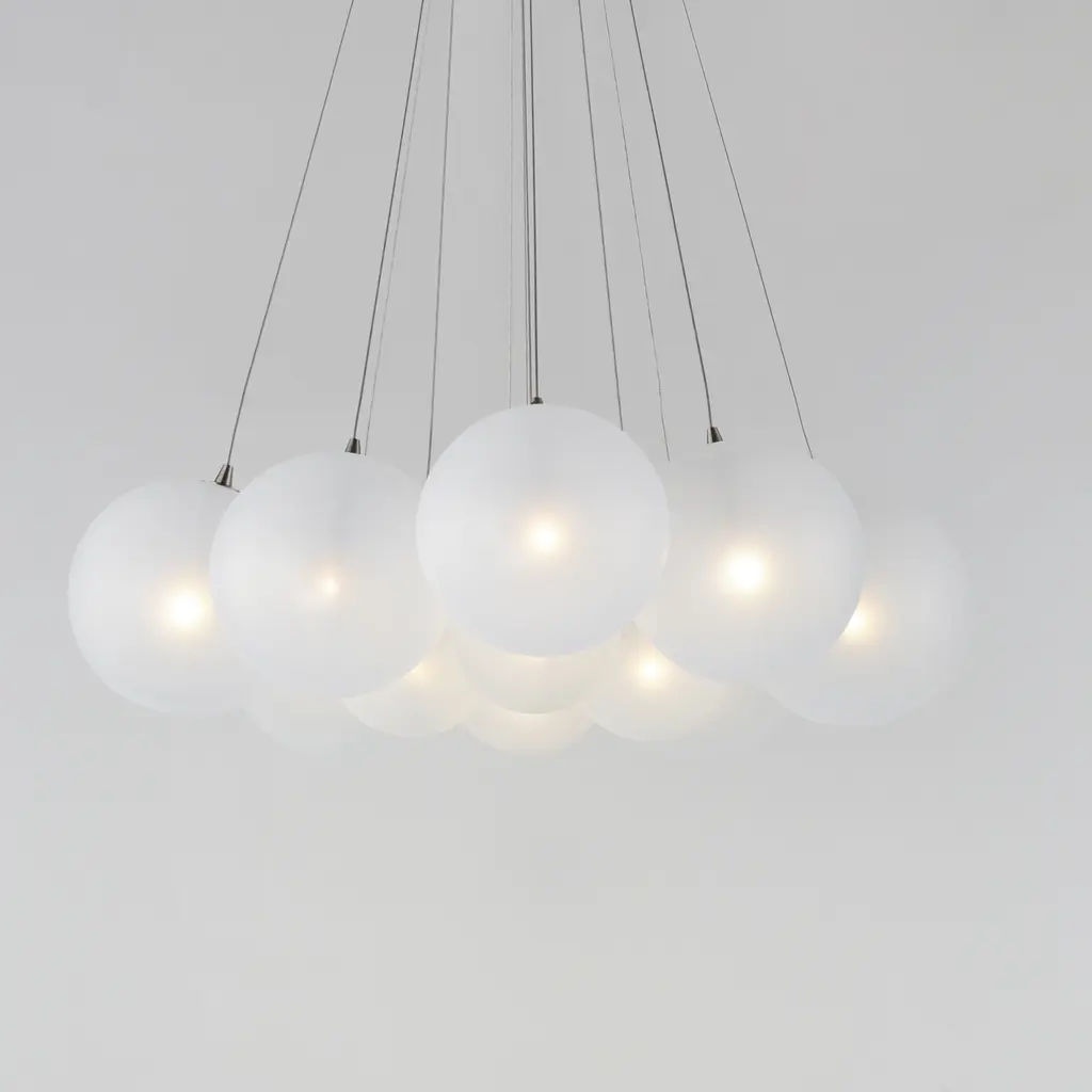 Burst Led 27 Inch Satin Nickel Multi-Light Pendant Ceiling Light In Translucent Frost