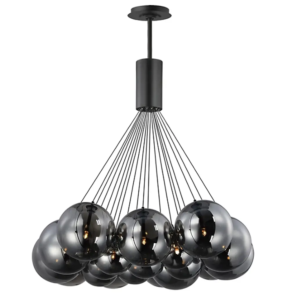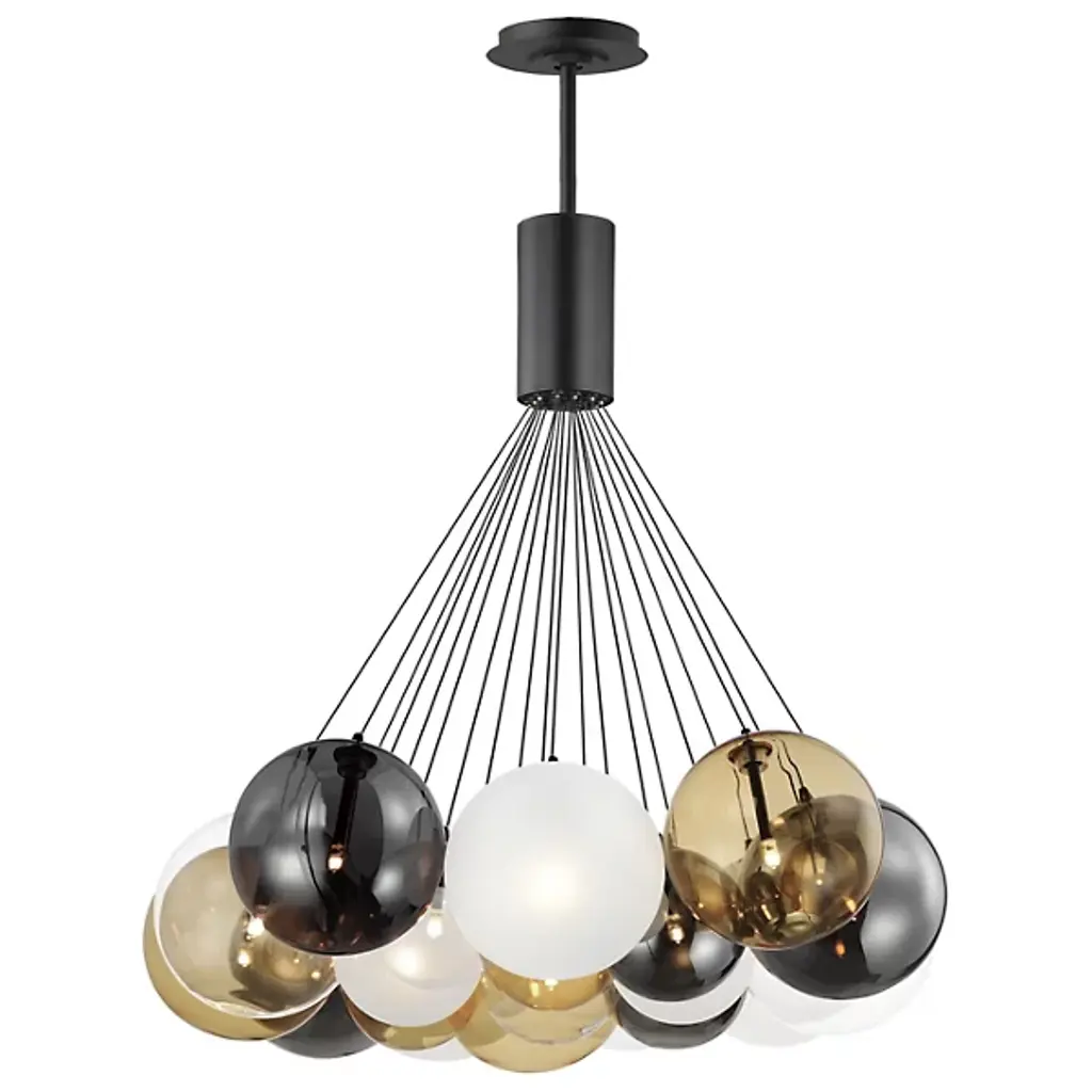 Elevate your space with the Burst Multi Light Pendant from ET2 Lighting, where clusters of globes in various sizes and colors burst outward from a central point. Each pendant is equipped with small-scaled LED G4 lamps, thoughtfully centered in the glass, accentuating the scale and infusing your space with a touch of brilliance. Illuminate your surroundings with this artful display that seamlessly blends style and functionality, creating a captivating ambiance in any room.