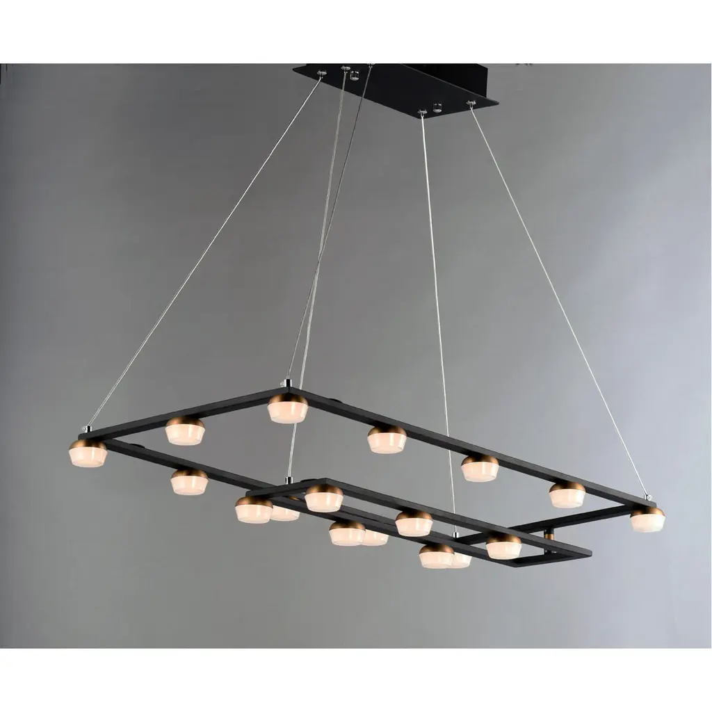Button Led 15.75 Inch Black And Gold Suspension Pendant Ceiling Light
