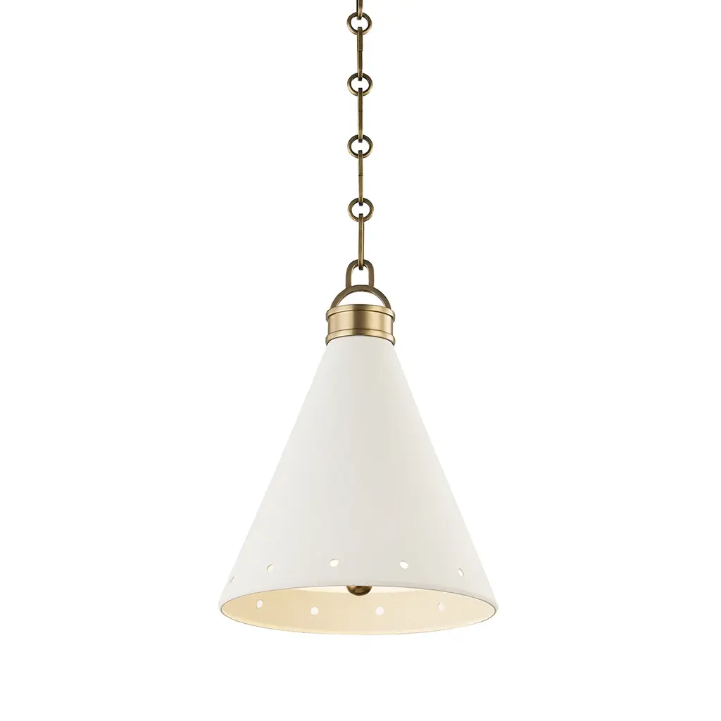 Trim, modern, and elegant, the Buxton pendant can fold into any space for a style refresh. The versatile hanging light design features a cone shade with perforated detailing to cast a generous pool of overhead light- find the size to suit your space.