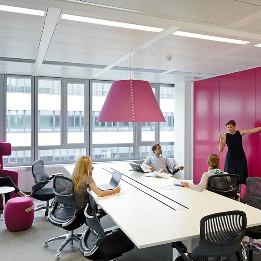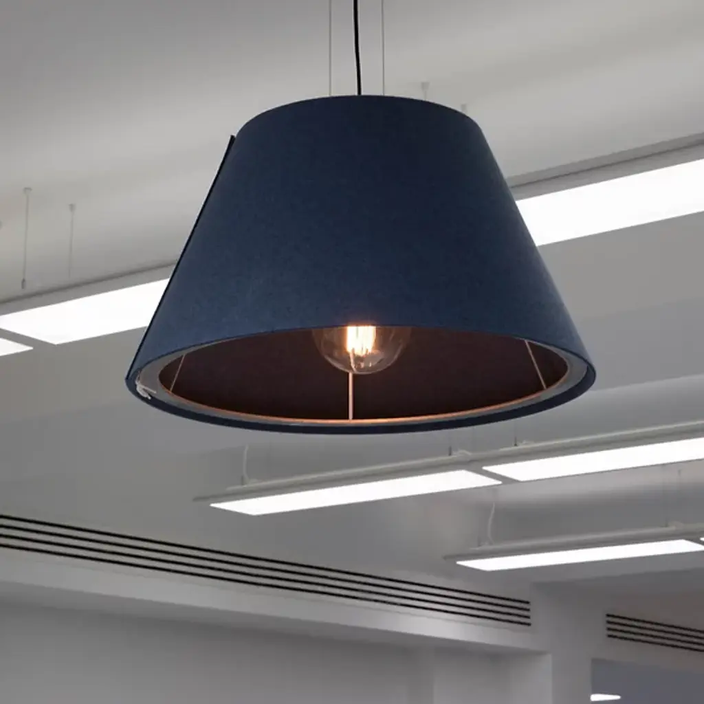 Imagine the comfort of a soft enclosure that drowns out the noise of day-to-day-life. That’s what the BuzziSpace BuzziShade Large Pendant is able to accomplish with a substantial drum shade composed of sound absorbent felt. Not only are external sounds and discussions quieted from earshot, but when seated or standing below the shade, a literal cone of silence is created—perfect for having private conversations in large public spaces. Additionally, the size and texture of the shade helps to generate a large amount of ambient light below.