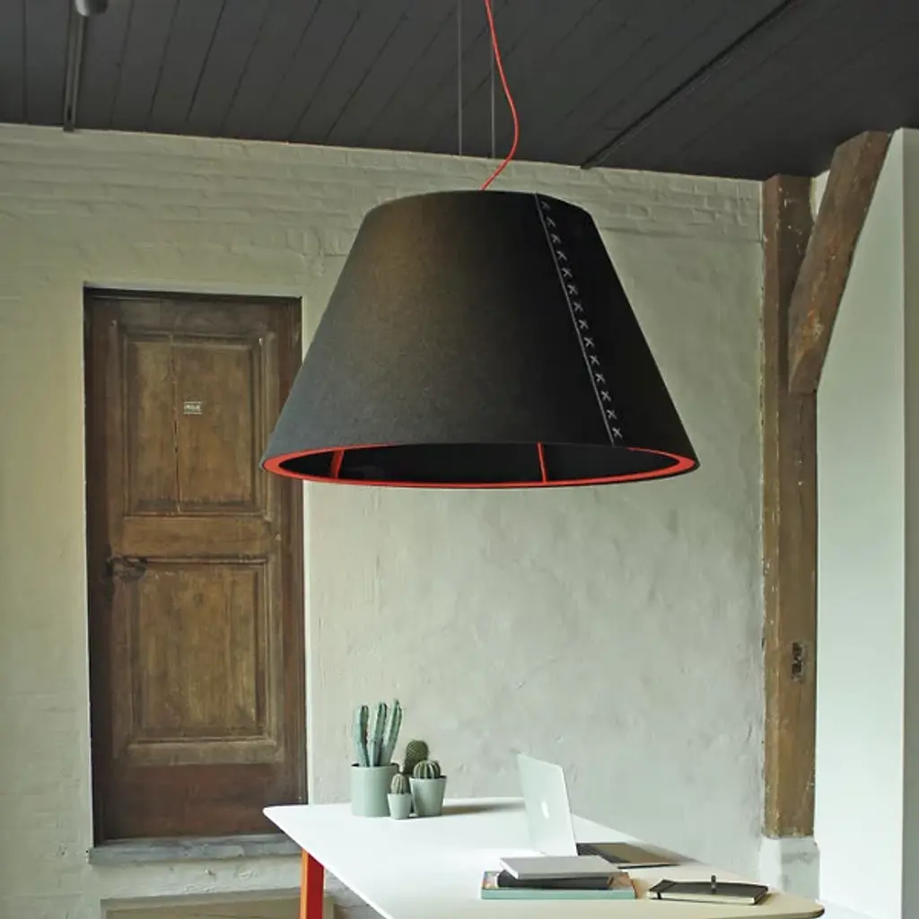 Imagine the comfort of a soft enclosure that drowns out the noise of day-to-day-life. That’s what the BuzziSpace BuzziShade Large Pendant is able to accomplish with a substantial drum shade composed of sound absorbent felt. Not only are external sounds and discussions quieted from earshot, but when seated or standing below the shade, a literal cone of silence is created—perfect for having private conversations in large public spaces. Additionally, the size and texture of the shade helps to generate a large amount of ambient light below.