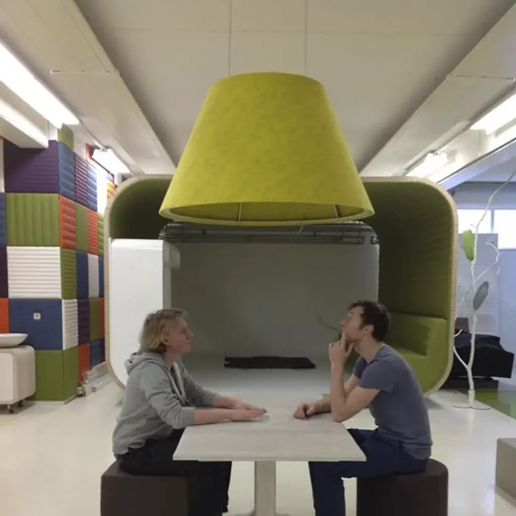 Imagine the comfort of a soft enclosure that drowns out the noise of day-to-day-life. That’s what the BuzziSpace BuzziShade Medium Pendant is able to accomplish with a substantial drum shade composed of sound absorbent felt. Not only are external sounds quieted from earshot, but when seated or standing below the shade, a literal cone of silence is created—perfect for having private conversations in large public spaces. Additionally, the size and texture of the shade helps to generate a large amount of ambient light below.