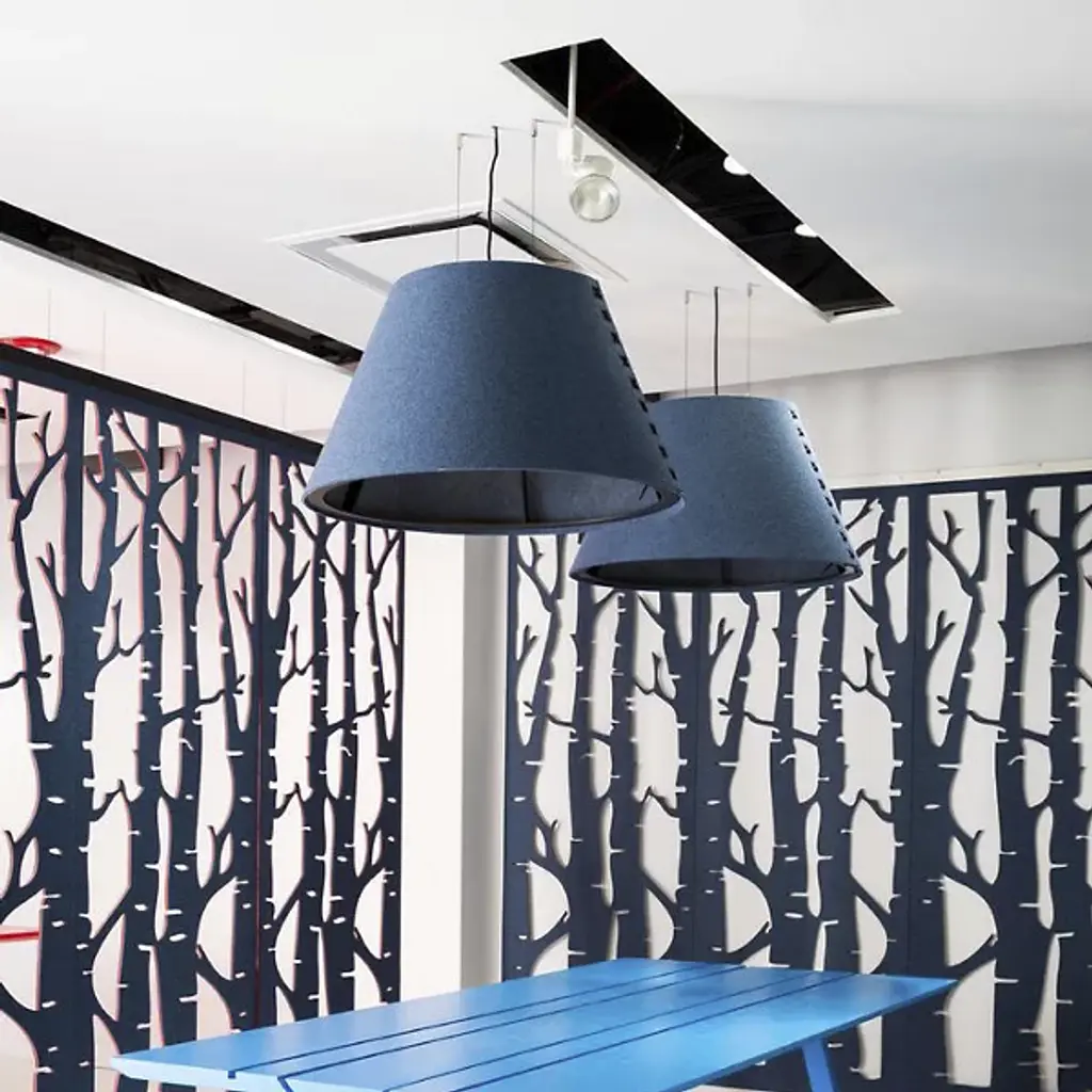 Imagine the comfort of a soft enclosure that drowns out the noise of day-to-day-life. That’s what the BuzziSpace BuzziShade Medium Pendant is able to accomplish with a substantial drum shade composed of sound absorbent felt. Not only are external sounds quieted from earshot, but when seated or standing below the shade, a literal cone of silence is created—perfect for having private conversations in large public spaces. Additionally, the size and texture of the shade helps to generate a large amount of ambient light below.