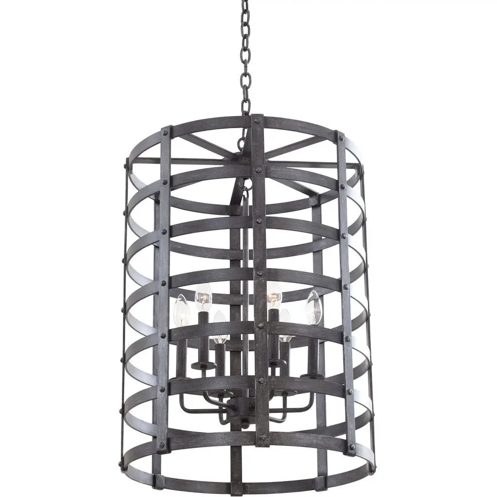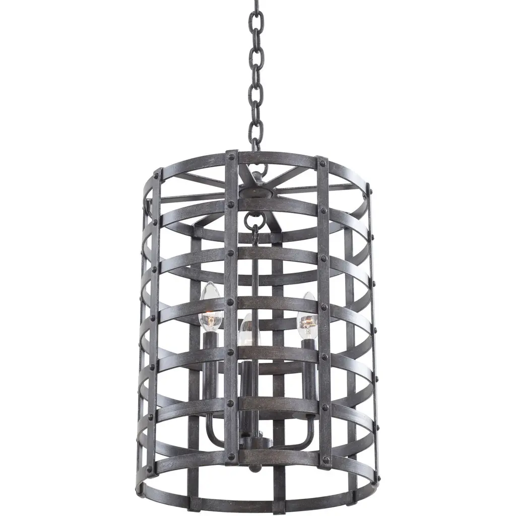 Inspired by traditional chamber fixtures, this three-light graphite pendant features a charming ``X`` shade motif. Its exterior graphite finish iron caging pairs with a mesh interior shade, giving this pendant a cool, industrial appeal.