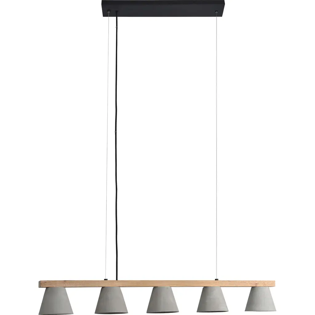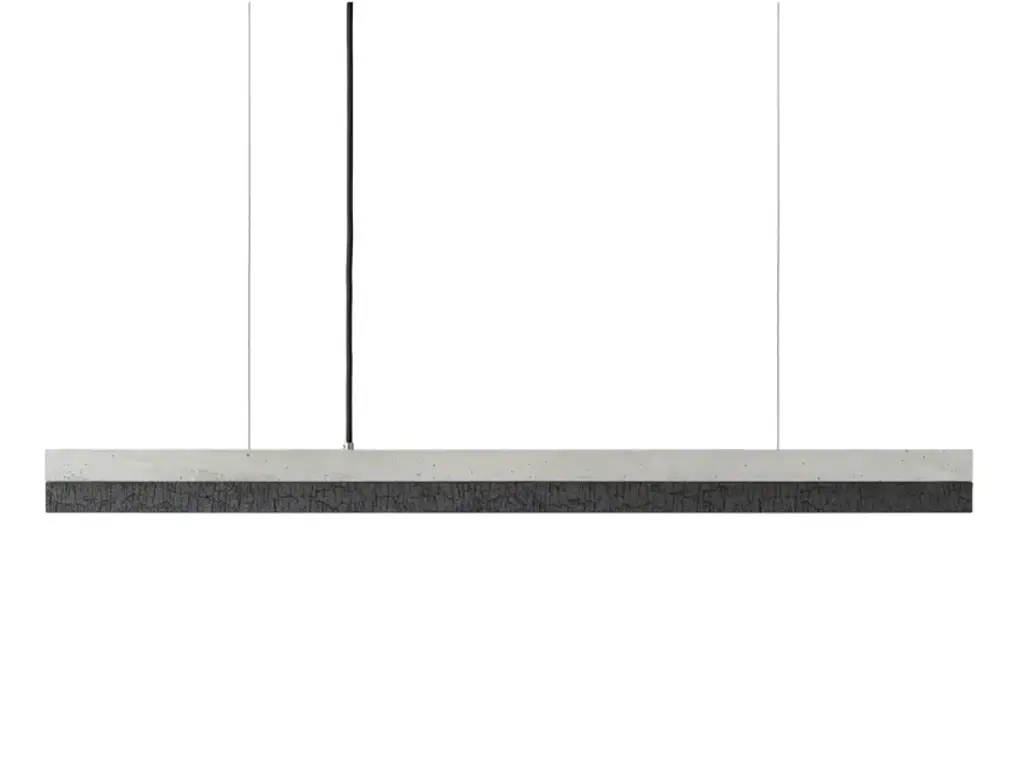 The rectangular hanging lamp [C2] BURNED WOOD combines light concrete with burned wood to create a timeless and elegant designer lamp. The different materials of the lamp shades can be changed and new combined at every time. The light can be dimmed with commercially available LED dimmers. Alternatively, the lamp is available with a touch-dim function. By gently touching the steel cables, the light is dimmed, touching it again makes the light brighter again. The [C] series lamps by Berlin label GANTlights received high acclaim at the European Consumers Choice Awards in 2015.Technical data:Measurements: W92cm x H7cm x D7cmProduct net weight: 13 kgCable length: 1.8 m / 3 m / 5 mCable colours: Black / light grey / graphite grey / white Light source: High quality LED unit made in GermanyDimmable: YesEnergy label: LED A++ / A+ / AColour temperature: Warm white 2700K / Cold white 4000KBrightness: 2100lmRated Voltage: 120-240V (50/60Hz)Watts: 25WBeam angle: 120°Power connection: Ceiling roseShips ready to installIncludes: LED strip, instructions, mounting hardware and brushed steel canopyDoes not include: Wall / ceiling plugs (anchors)