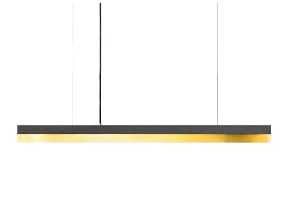 The rectangular pendant lamp [C2] DARK BRASS merges dark grey concrete with brass, resulting in a timeless and elegant designer light.Designed by Stefan Gant and handmade in Berlin, the light is ideally suited for illuminating a dining table, desk or sideboard.The LED unit is available in two alternative colour temperatures: Warm white (2700 Kelvin) and cold white (4000 Kelvin).The [C] series lights by Berlin label GANTlights received high acclaim at the European Consumers Choice Awards in 2015.Measurements: W92cm x H7cm x D7cmProduct net weight: 5kgCable length: 2m / 3m / 5mCable colour: Black / grey / whiteLight source: High quality LED unit made in GermanyDimmable: YesEnergy label: LED A++ / A+ / AColour temperature: Warm white 2700K / Cold white 4000KBrightness: 2100lmRated Voltage: 120-240V (50/60Hz)Watts: 25WBeam angle: 145°Power connection: Ceiling rose Ships ready to installIncludes: LED unit, instructions, mounting hardware and brushed steel canopyDoes not include: Wall / ceiling plugs (anchors) Packaging dimensions: W100cm x H20cm x D18cmGross dispatch weight: 7.5kg