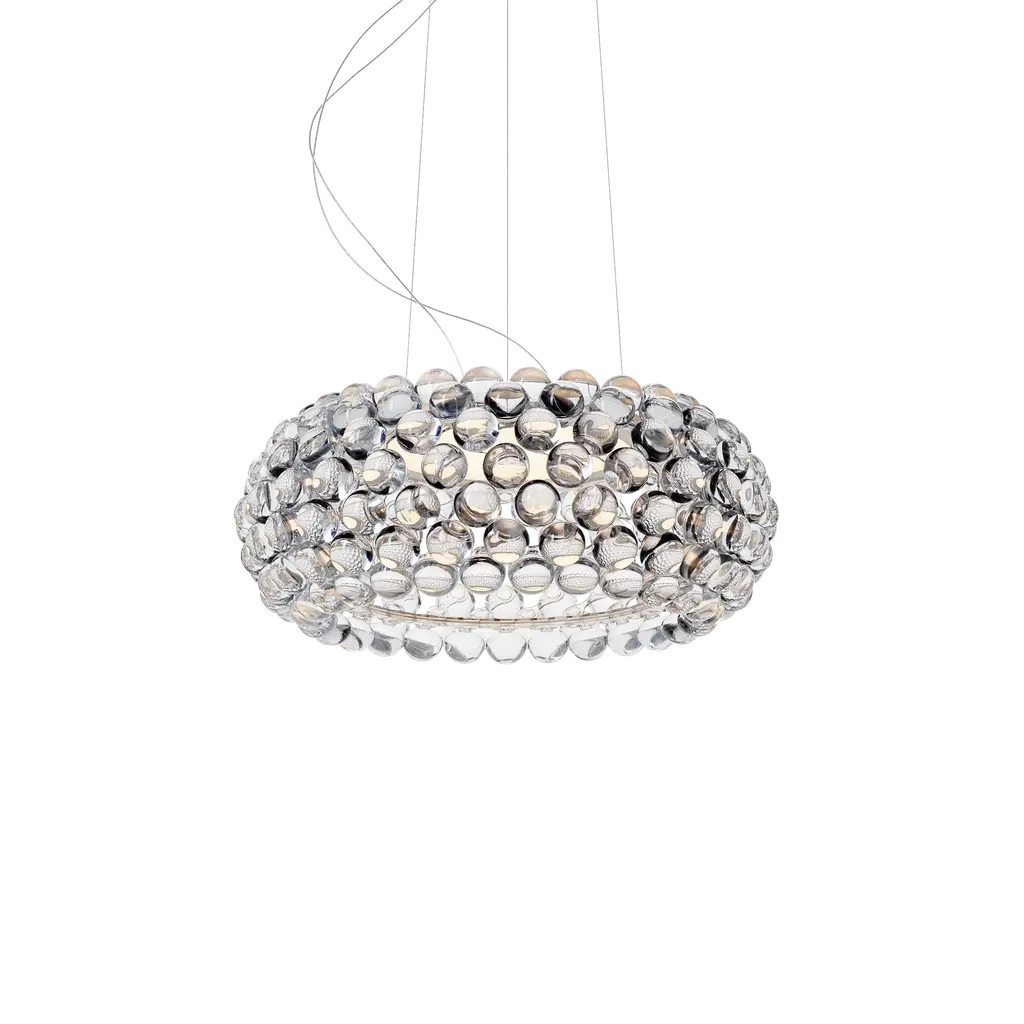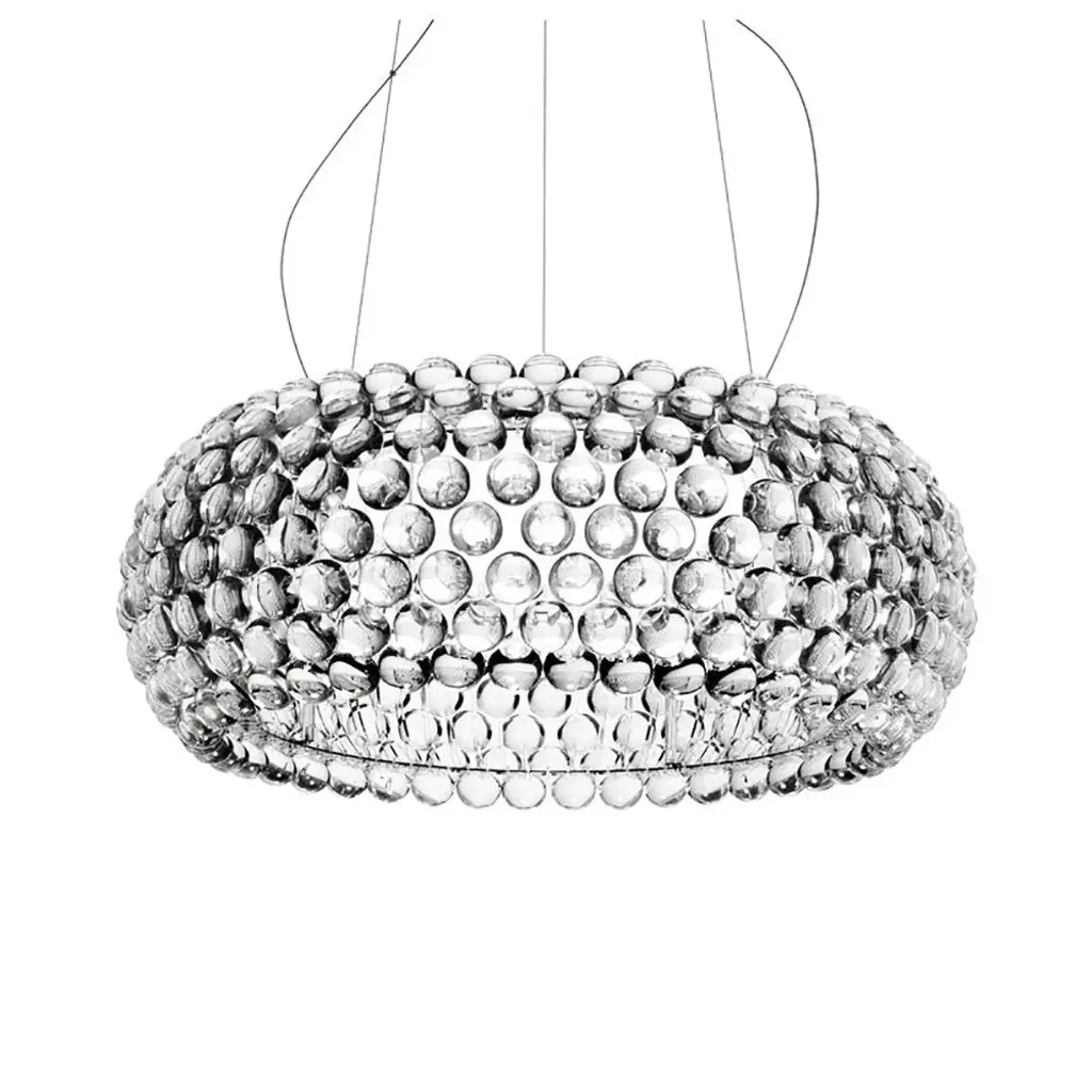 Caboche Plus is a pendant lamp made of PMMA, steel and liquid coated aluminium.LIGHT SOURCECaboche Plus big - L 70 x H 28 cm220 / 240 VLED included28W2700 K 3850 lm CRI>90On-Off (not dimmable) /Dimmable Push -DALI / Dimmable via Bluetooth with Casambi App / Dimmable Tunable WhiteIP 20Energy efficiency ECaboche Plus media Halo R7S - L 50 x H 20 cm220 / 240 VHalo Max 1x160W R7sIP 20Bulb not includedCaboche Plus medium - L 50 x H 20 cm220 / 240 VLED included23W2700 K 3200 lm CRI>90On-Off (not dimmable) /Dimmable Push -DALI / Dimmable via Bluetooth with Casambi App / Dimmable Tunable WhiteIP 20Energy efficiency ECaboche Plus small - L 31 x H 19 cm220 / 240 VLED included7W2700 K 1000 lm CRI>90Not dimmableOn/OffIP 20Energy efficiency DMore transparency, lighter shapes and an even brighter light. New arches, a new “twist lock” attachment system and new spheres, that appear to float in space once mounted, create a truly beguiling total transparency effect. When it is switched on, light spreads without interference through 360°, with a beam both directed below and upwards. Available in the new, sophisticated grey colour.