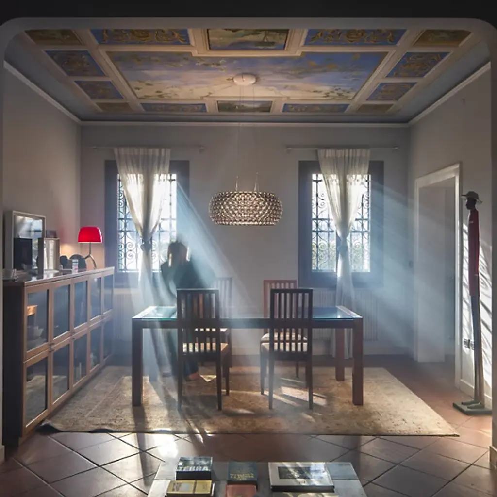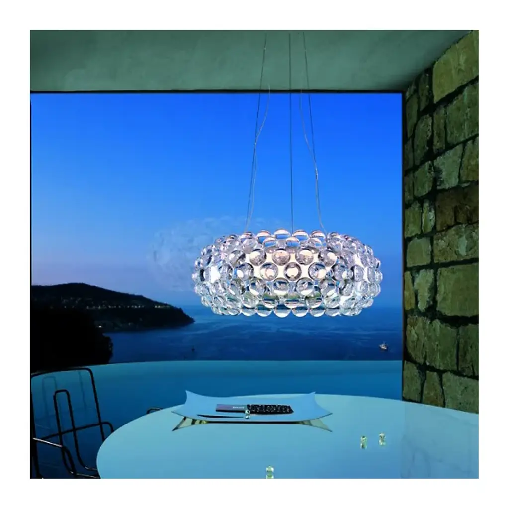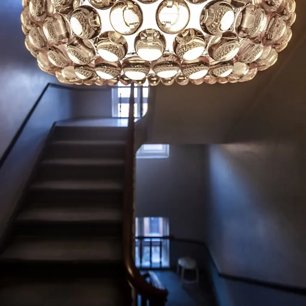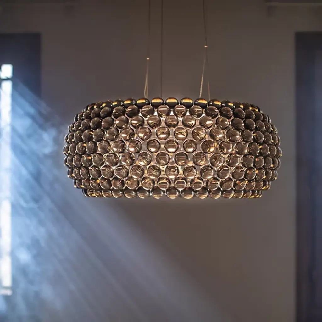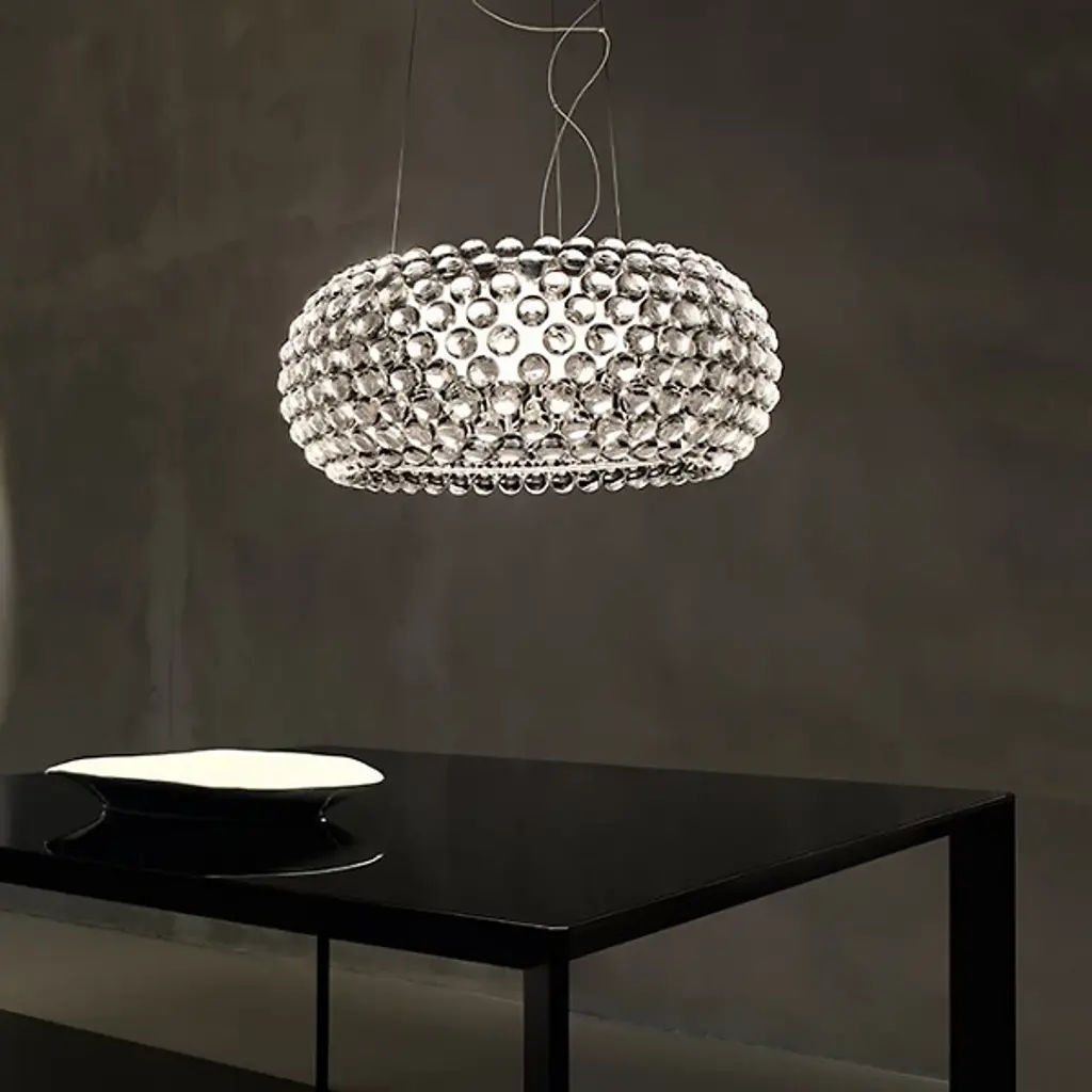 The Foscarini Caboche Plus Pendant is as ornamental as jewelry, with intricate blown glass facets that capture and replicate the bright light source inside. Highly decorative yet completely functional, the fixture produces significant down and up light along with the glassy reflective light through the acrylic facets. The new LED technology is sophisticated and re-engineered to produce the same diffusion and light temperature as the original Caboche Suspension.