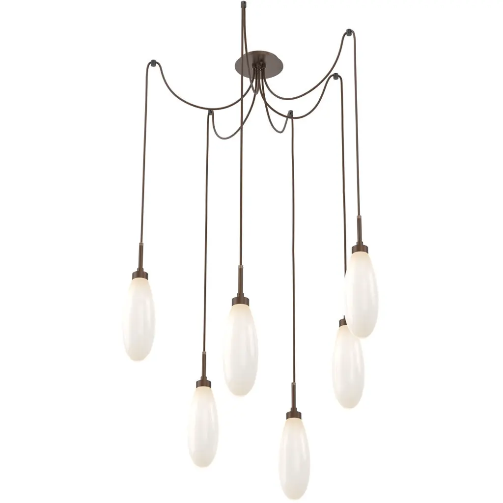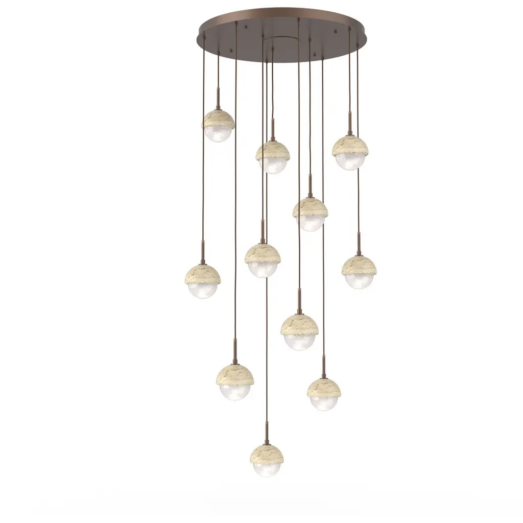 Cabochon Led 14.1 Inch Burnished Bronze With Travertine Stone Swag Multi-Pendant Ceiling Light In 2700k Led, Opal White