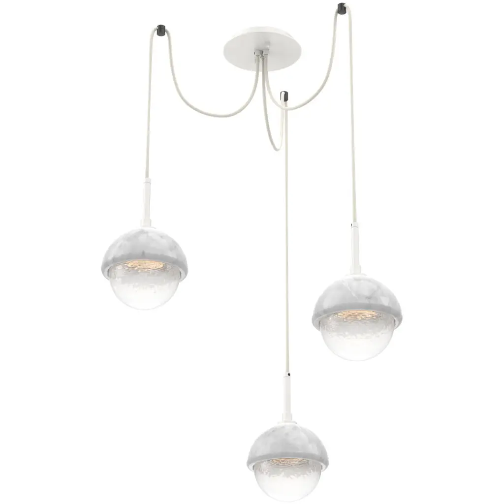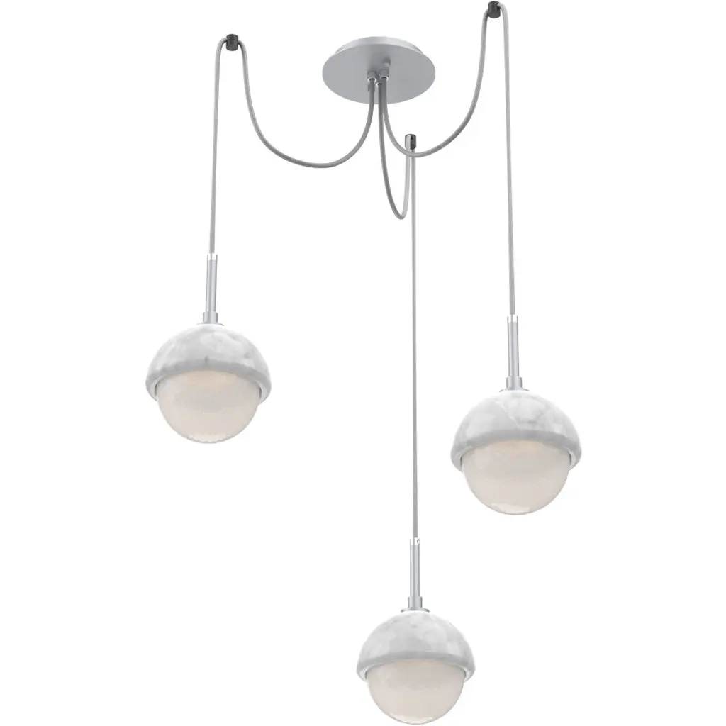 Cabochon Led 14.1 Inch Classic Silver With Black Marble Swag Multi-Pendant Ceiling Light In 2700k Led, Opal White