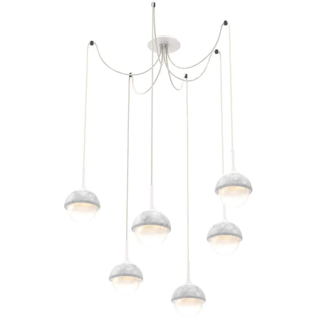 Capturing the visual intrigue of a time-honored gemstone style, this versatile chandelier enables customization of the placement and height of each pendant. Each Pebble is a sculptural fusion of polished stone, artisan blown crystal glass and metalwork. Integrated LED light illuminates each glass shade without the distraction of a filament bulb. Available in several glass colors, stone styles and finishes.