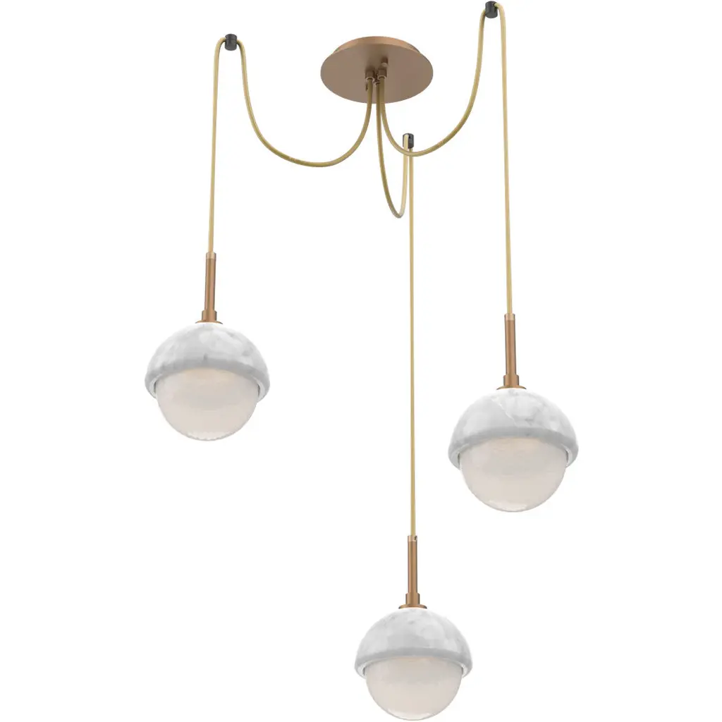 Cabochon Led 14.1 Inch Novel Brass With White Marble Swag Multi-Pendant Ceiling Light In 3000k Led, Opal White