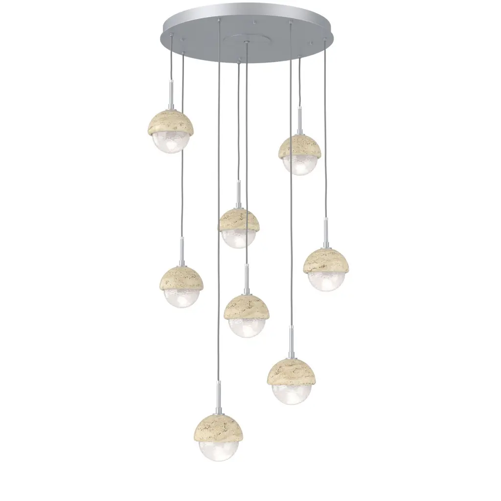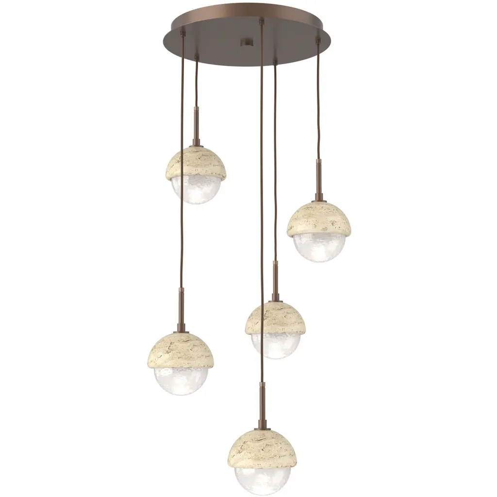Cabochon Led Burnished Bronze With Travertine Stone Pendant Chandelier Ceiling Light In 3000k Led, Opal White