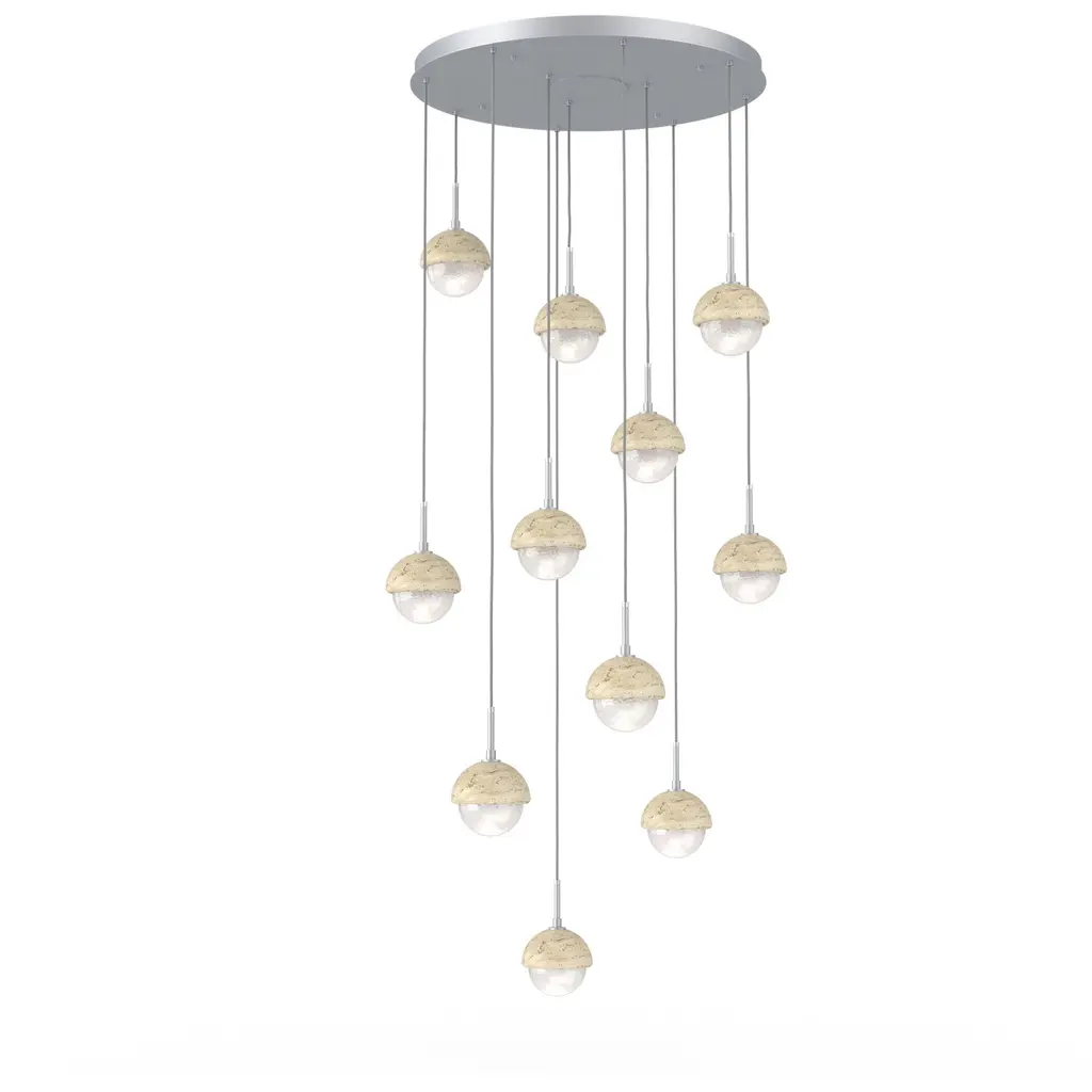 Cabochon Led Classic Silver With Travertine Stone Pendant Chandelier Ceiling Light In 3000k Led, Opal White