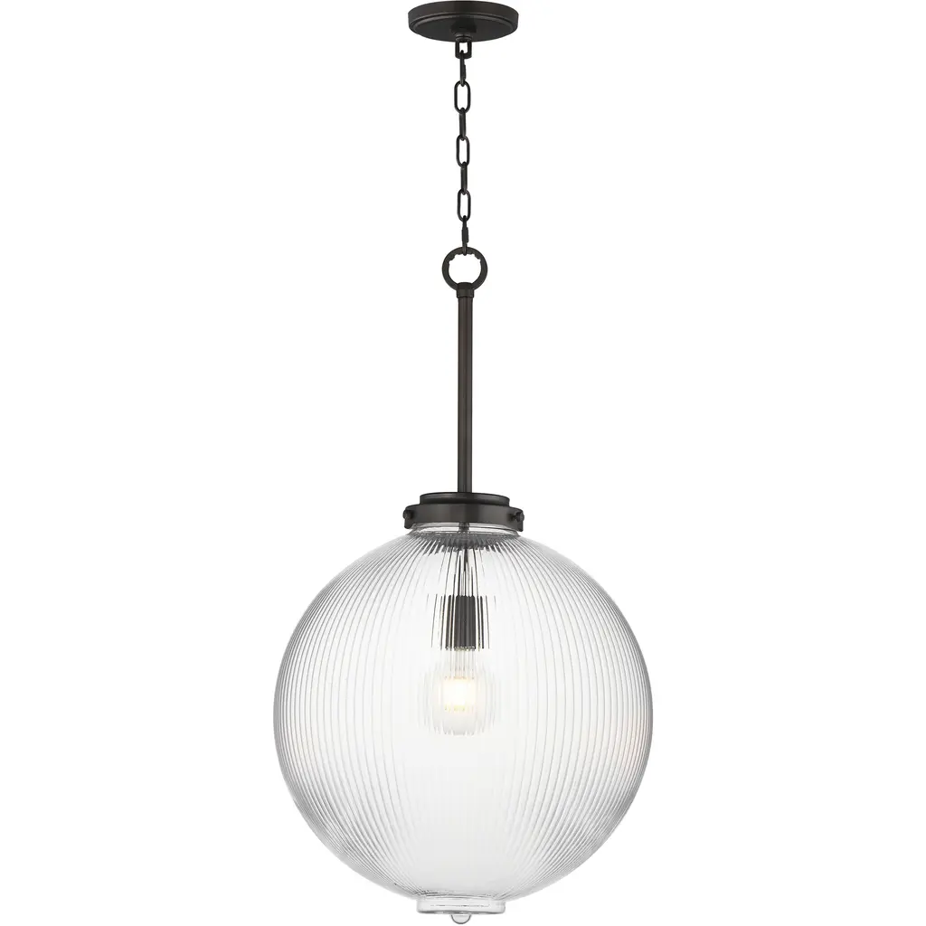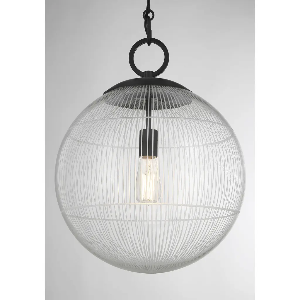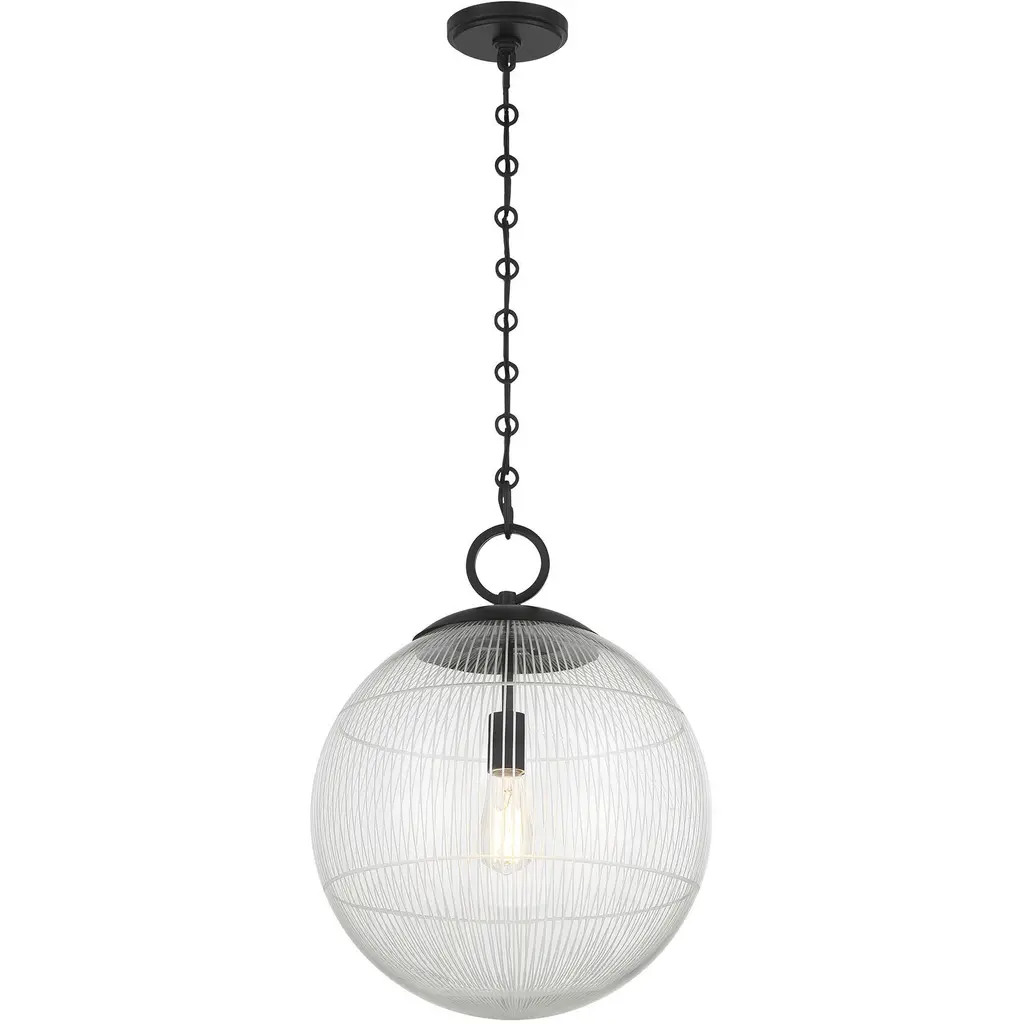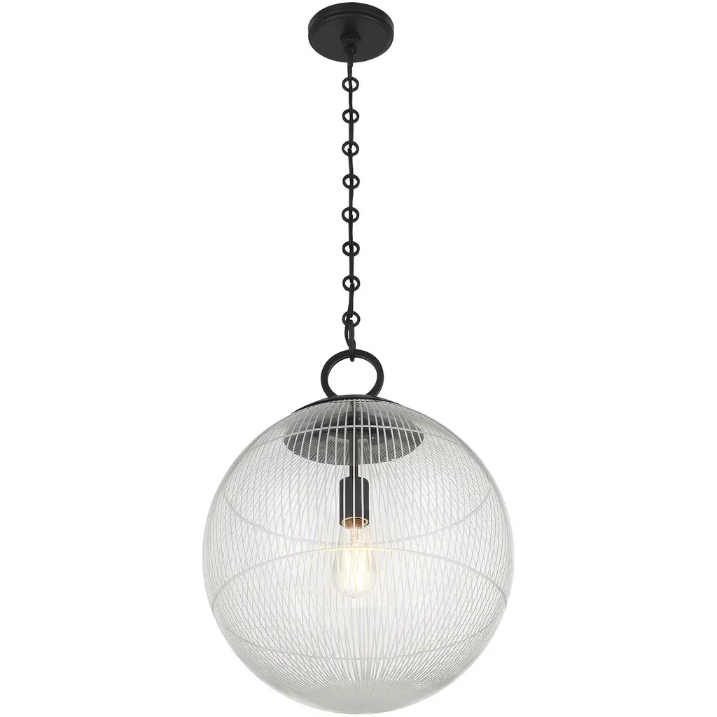 The Savoy House Cabot 1-light pendant takes the beauty of pendant lights to a whole new level with its orb of segmented glass. This orb has an intriguing slim cage-like pattern etched into it, creating a huge dose of texture and style whether the light is on or off. Circular hardware detailing echoes the shape of the glass and wears a Matte Black finish beautifully. Cabot is 19.25" in height and 16" in width. Uses one standard size bulb of up to 60 watts. Bulb not included. Comes with 120" of chain.