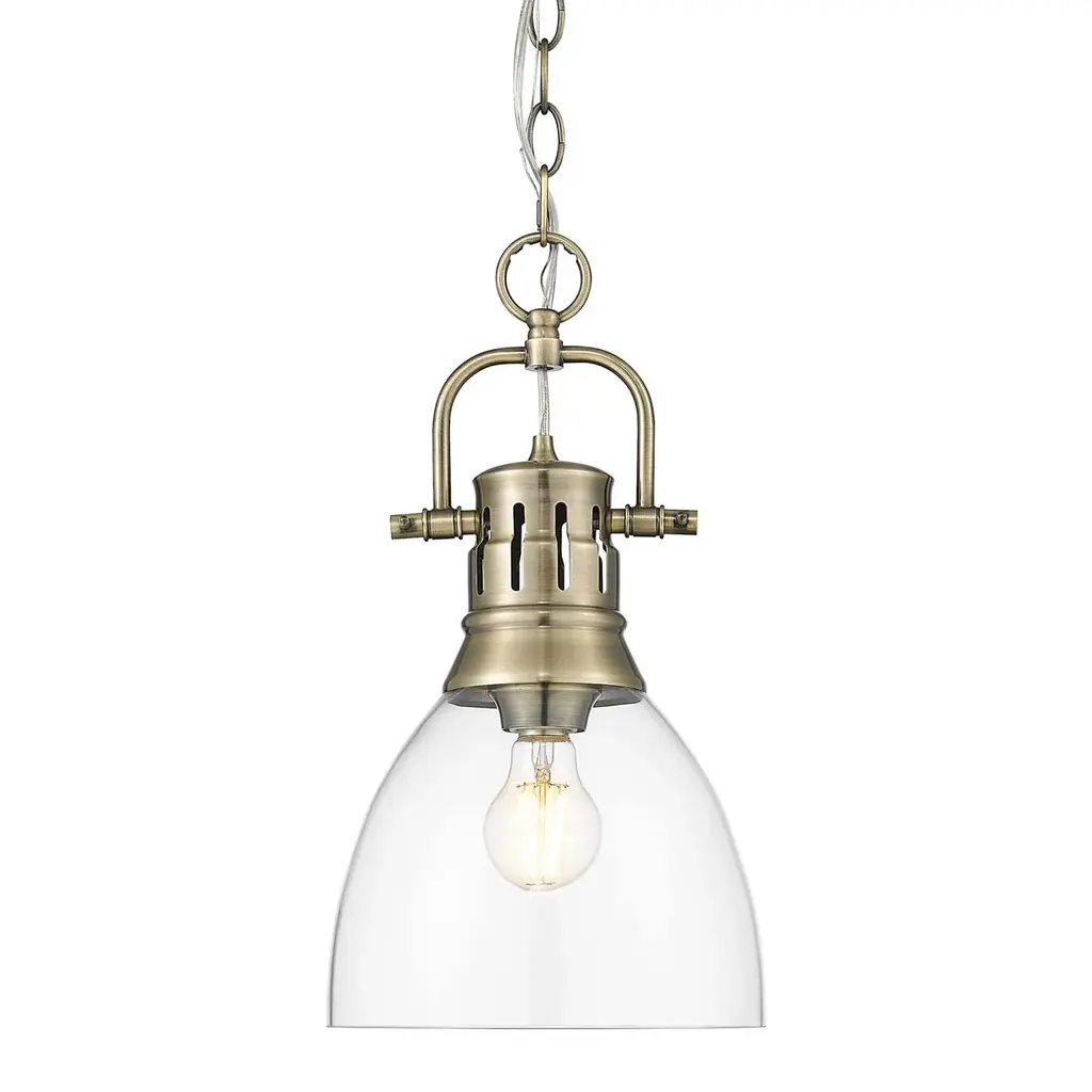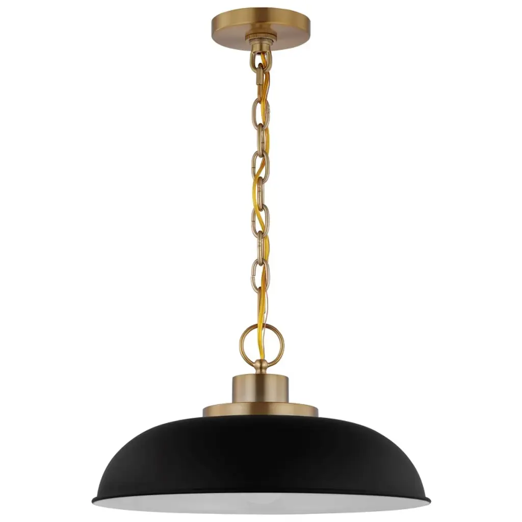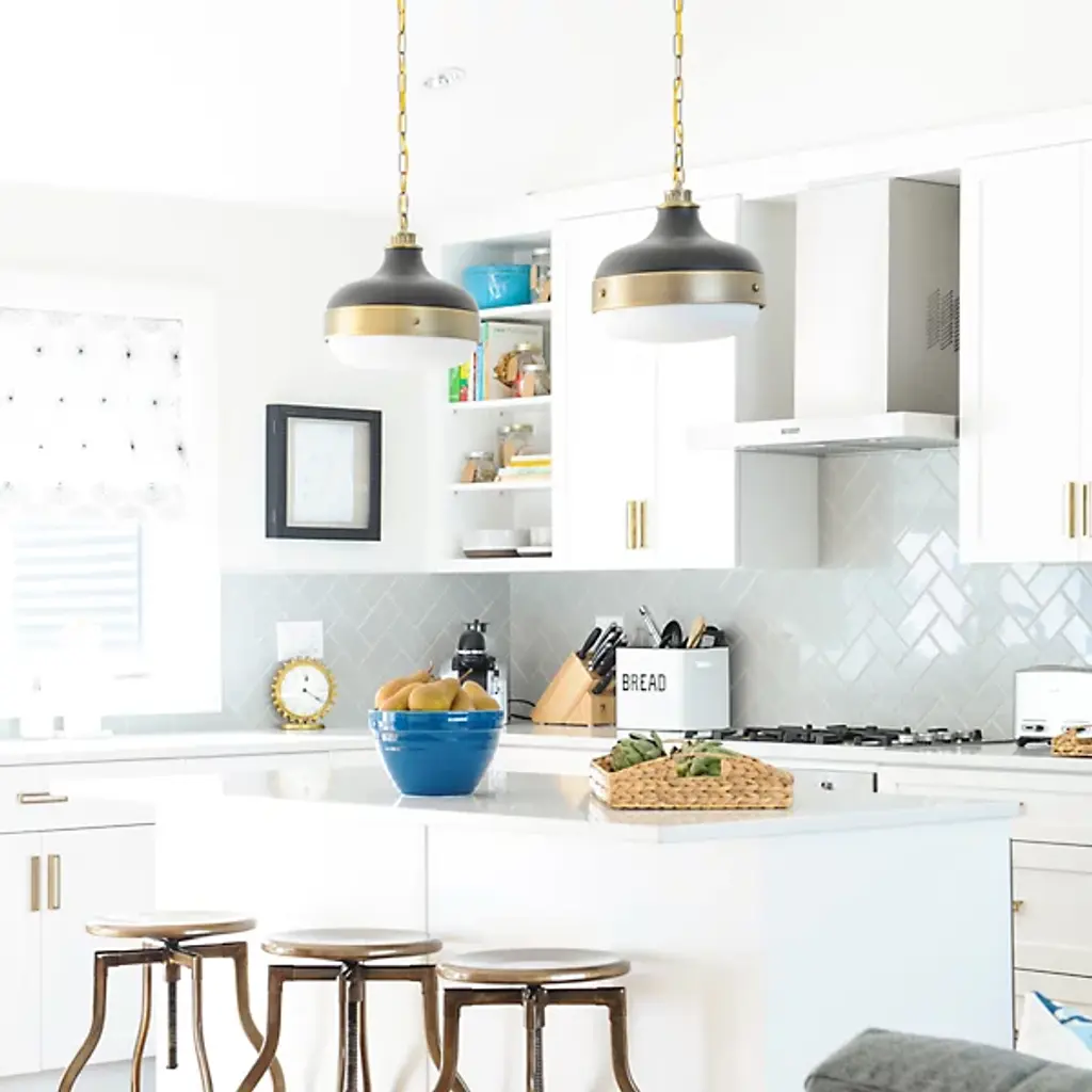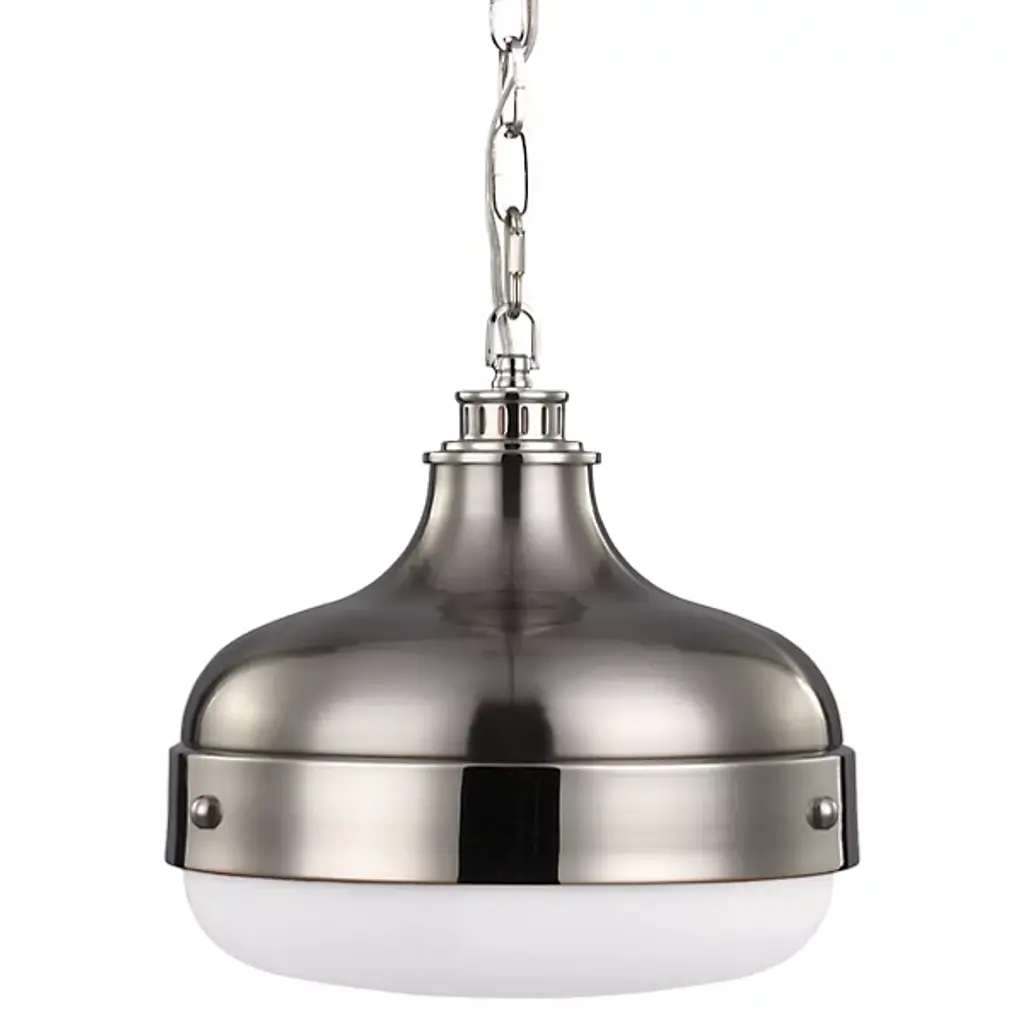 Relaxed restoration style. The Generation Lighting, formerly known as Feiss, Cadence Pendant creates an authentic vintage impression yet stays streamlined and free of fussy accoutrements that bedeck some Victorian-style fixtures. A smooth, wideband encircles the fixture, connecting the upper metal shade with the White Opal Etched glass diffuser. The silhouette resembles popular early warehouse-style lighting, but refined and finished for modern interiors with the rounded bottom diffuser.