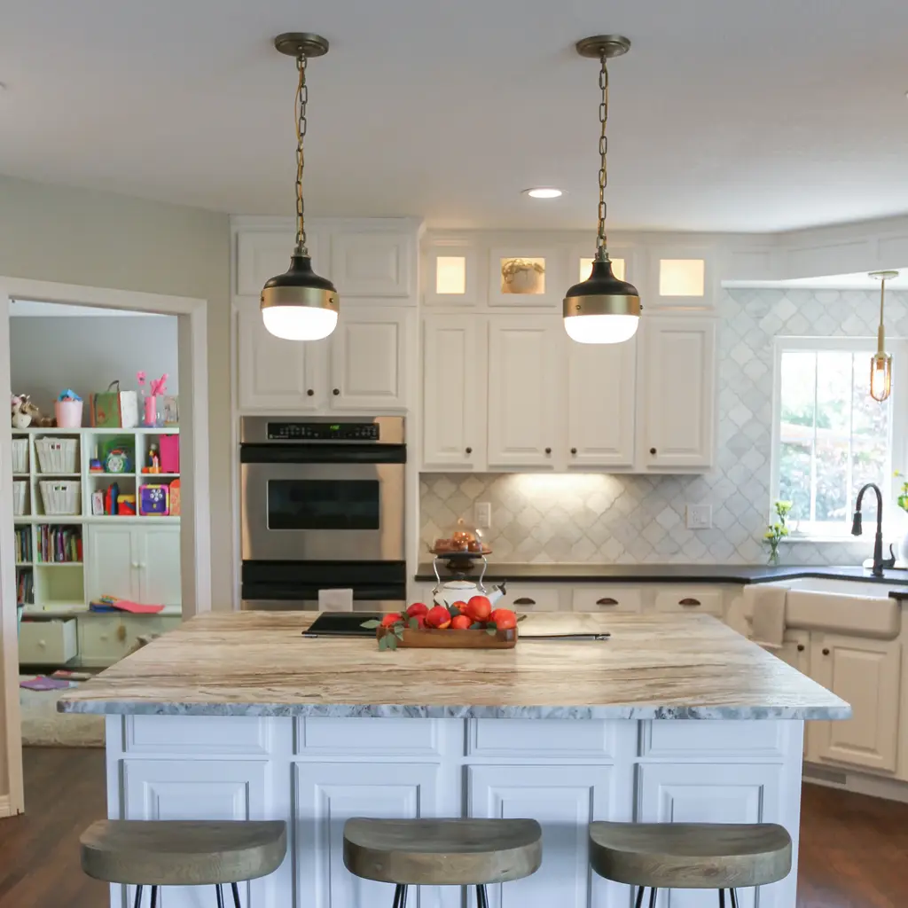 Harking back to period-inspired, warehouse lighting, the Cadence lighting collection by Feiss is a contemporary update to historic industrial fixtures. The riveted center band, as well as the vented top and square-linked chain on the pendants add rich, visual interest yet don't distract from the clean lines of the overall silhouette. Features