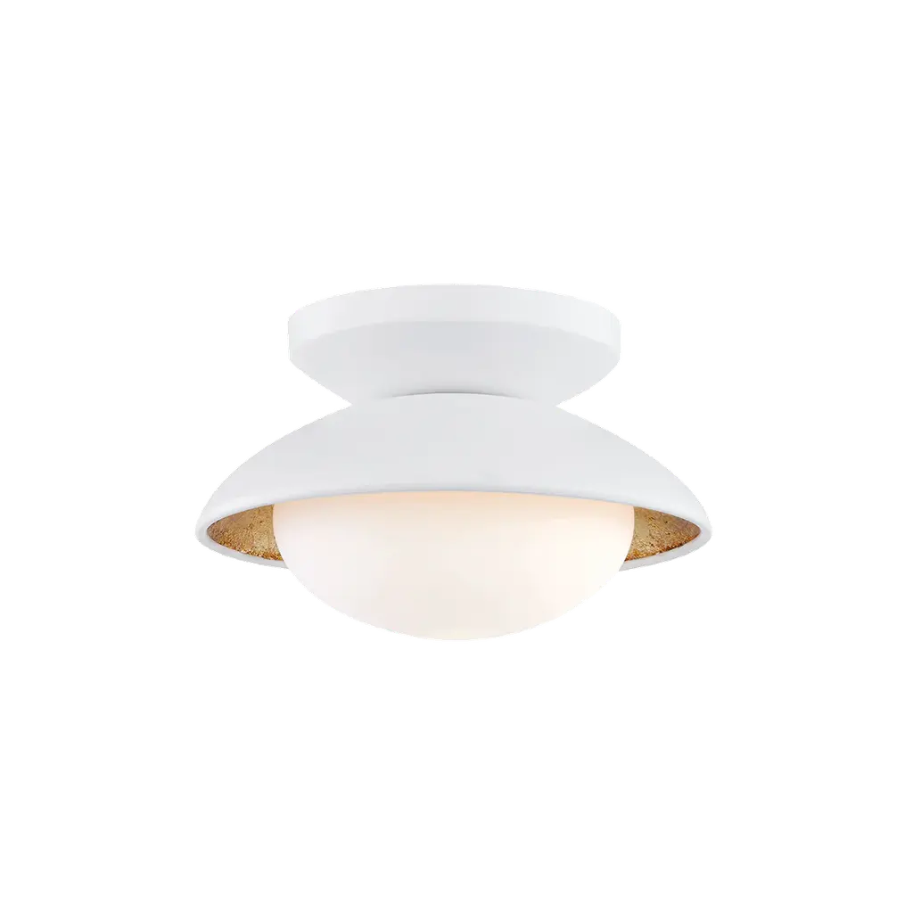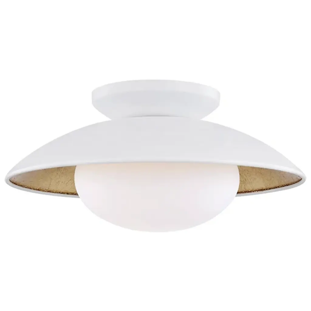 Clean, minimalist style that's beautifully simple. With a flat, domed Steel frame and Glass shade, the Cadence Semi-Flushmount by Mitzi is sure to be a modern classic. The ideal addition for adding warm, flattering light, this fixture showcases minimalist lines and a sophisticated aesthetic that will complement modern or minimalist decor and furnishings. It fits right in with any area of the house, from the foyer, hallway, living room, bedroom or home office and accents any space effortlessly. The light is diffused through the shade and produces a warm glow.
