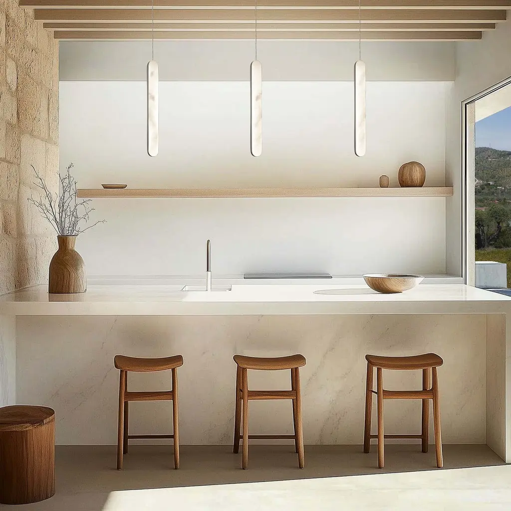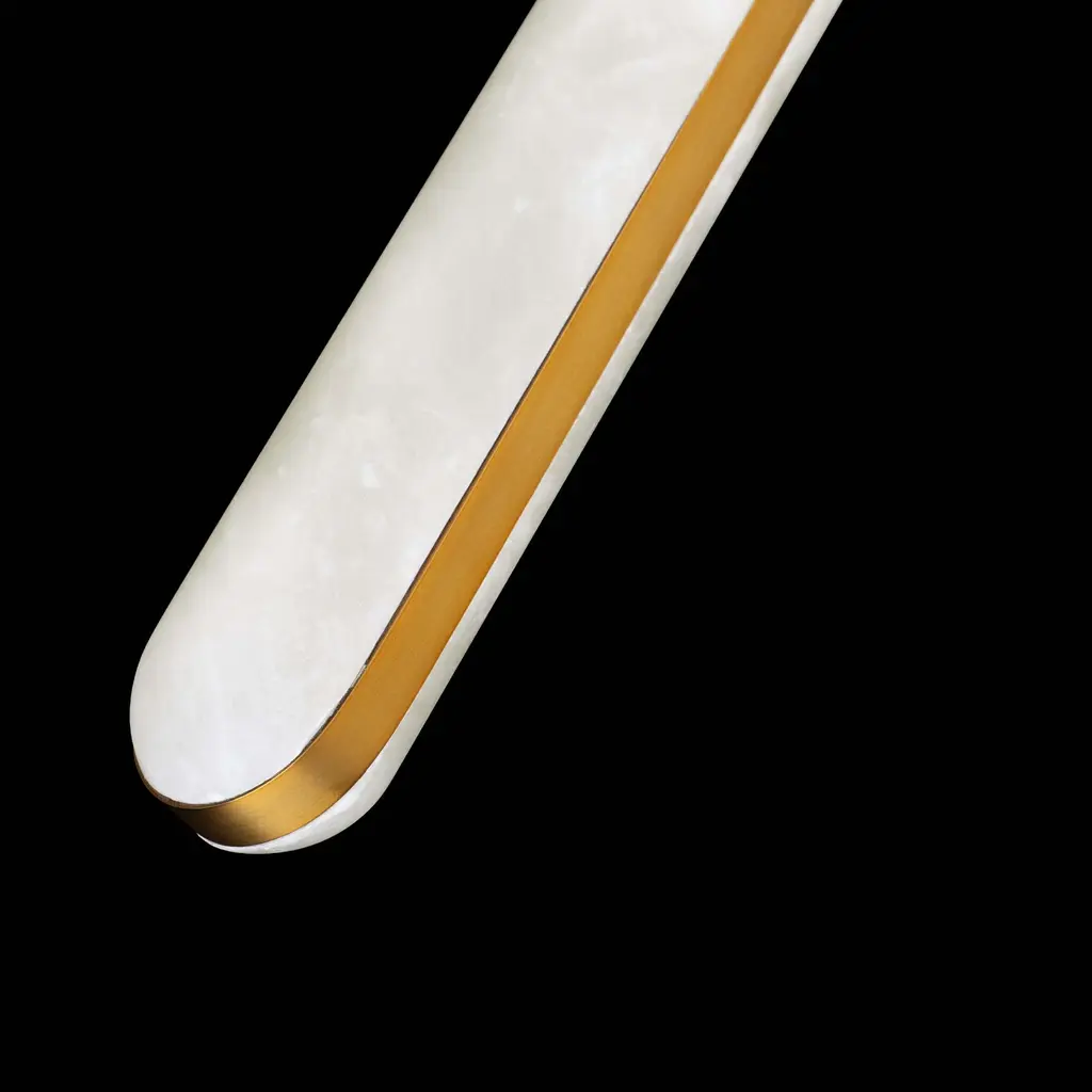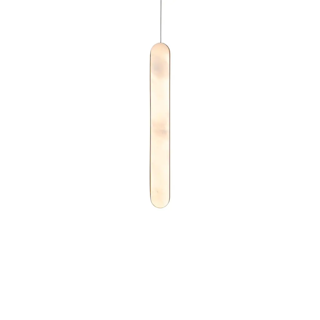 A celebration of natural, luminous stone, the Cadiz LED Pendant Light from Modern Forms showcases the unique beauty of Spanish alabaster. This elegant pendant features a tall cylinder of solid alabaster, its distinctive natural veining making each piece a one-of-a-kind work of art. The stone is encased in slender metallic straps for a sophisticated contrast. When lit, the alabaster radiates a rich and beautifully diffused glow, bringing a touch of timeless, natural luxury to any interior. Highlights: