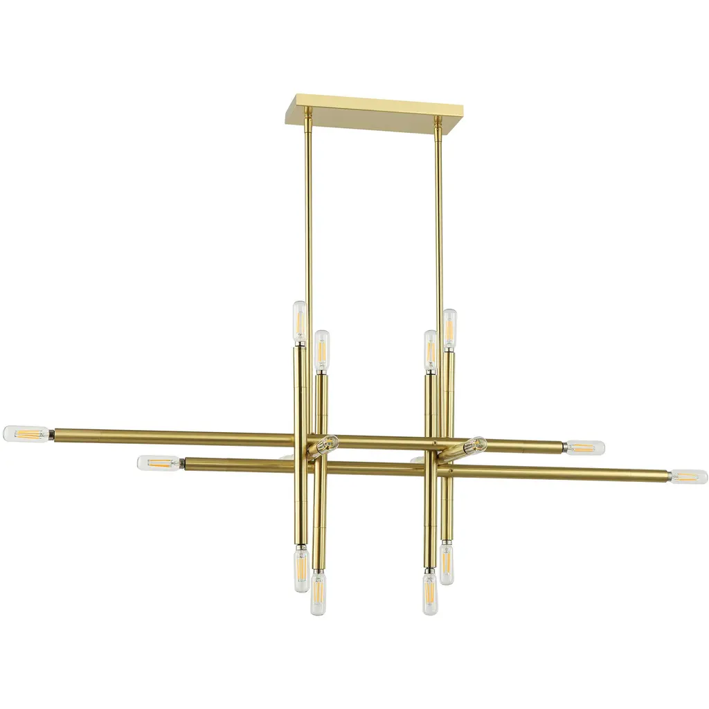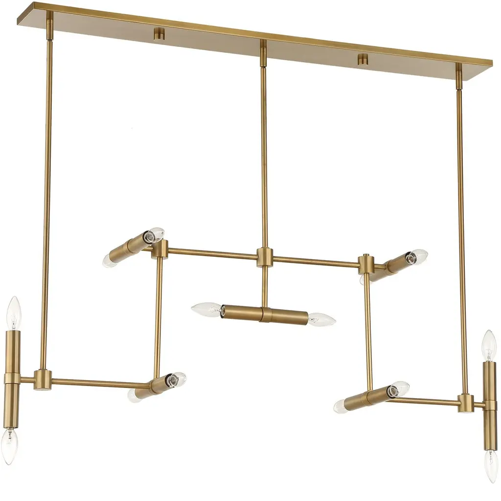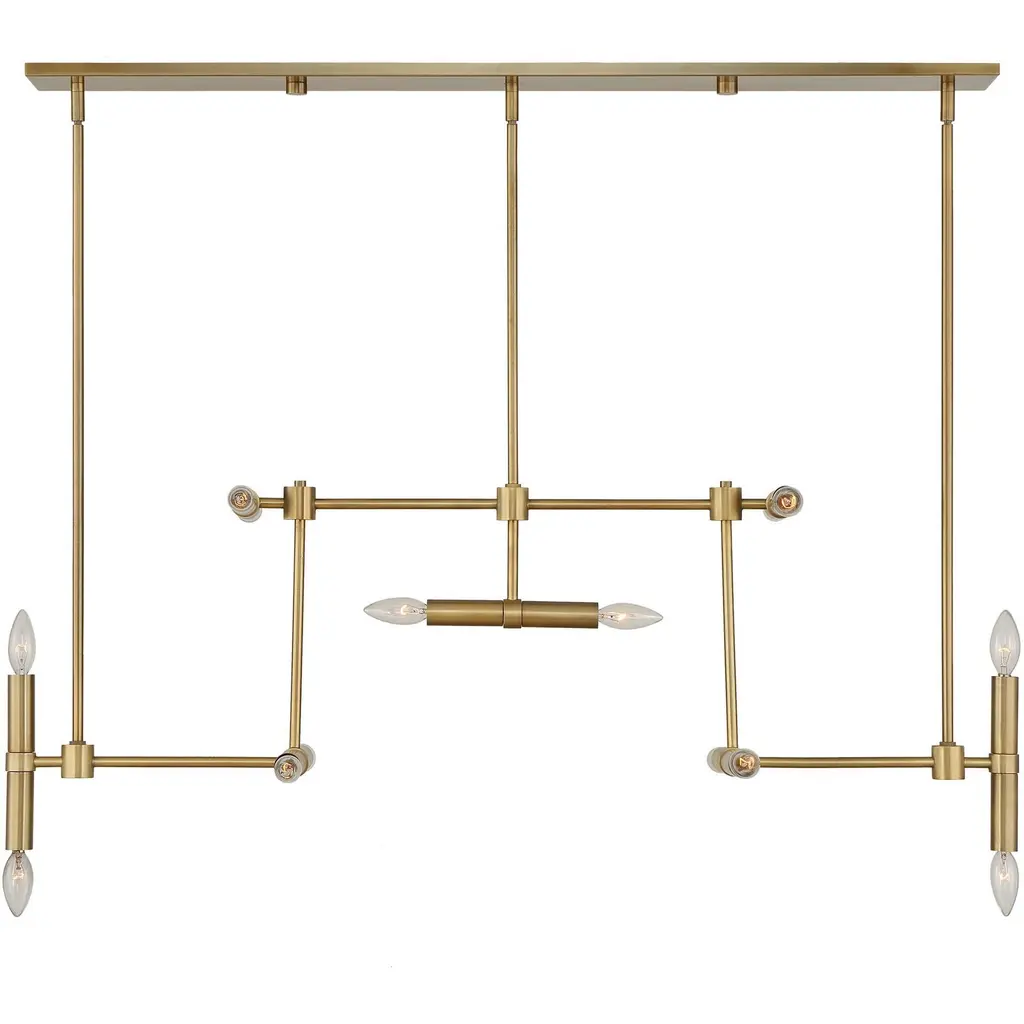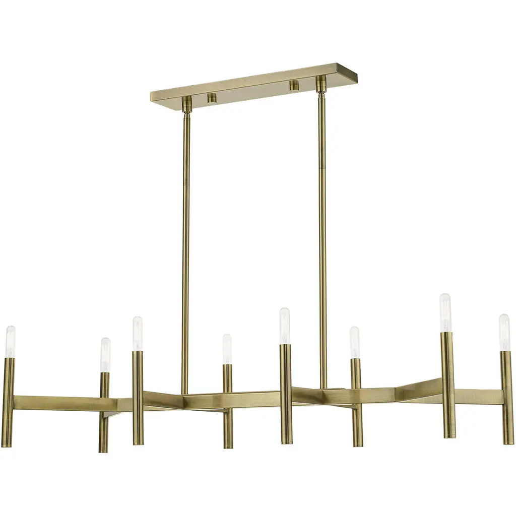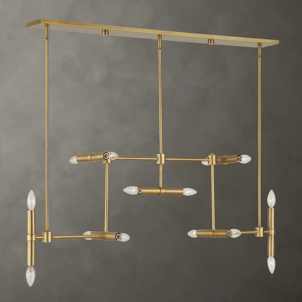 An Over-sized Framework Structure In A Clean Linear Pattern Gives Us This Unique Pendant In An Antique Brass Finish. 14-25 Watt Max Candelabra Sockets. Bulbs Not Included. Supplied With 15' Wire, 9-12" Stems And 3-6" Stem For Adjustable Installation.
