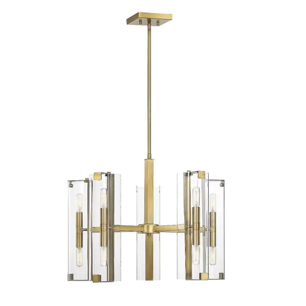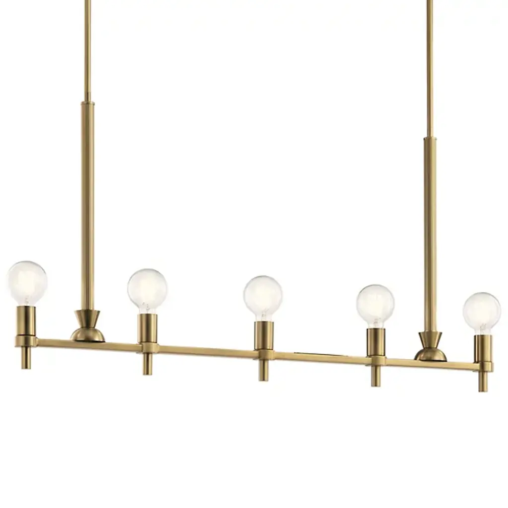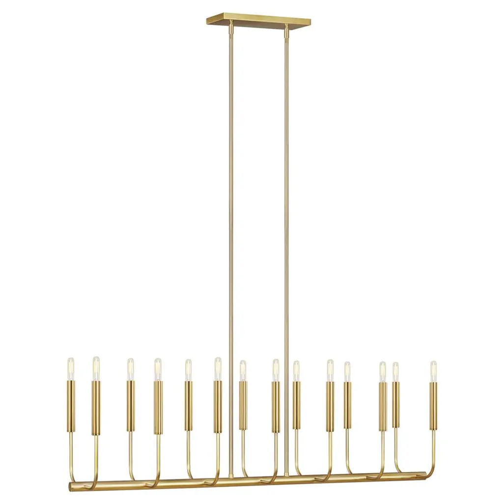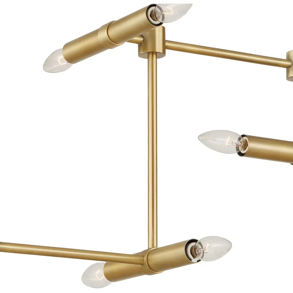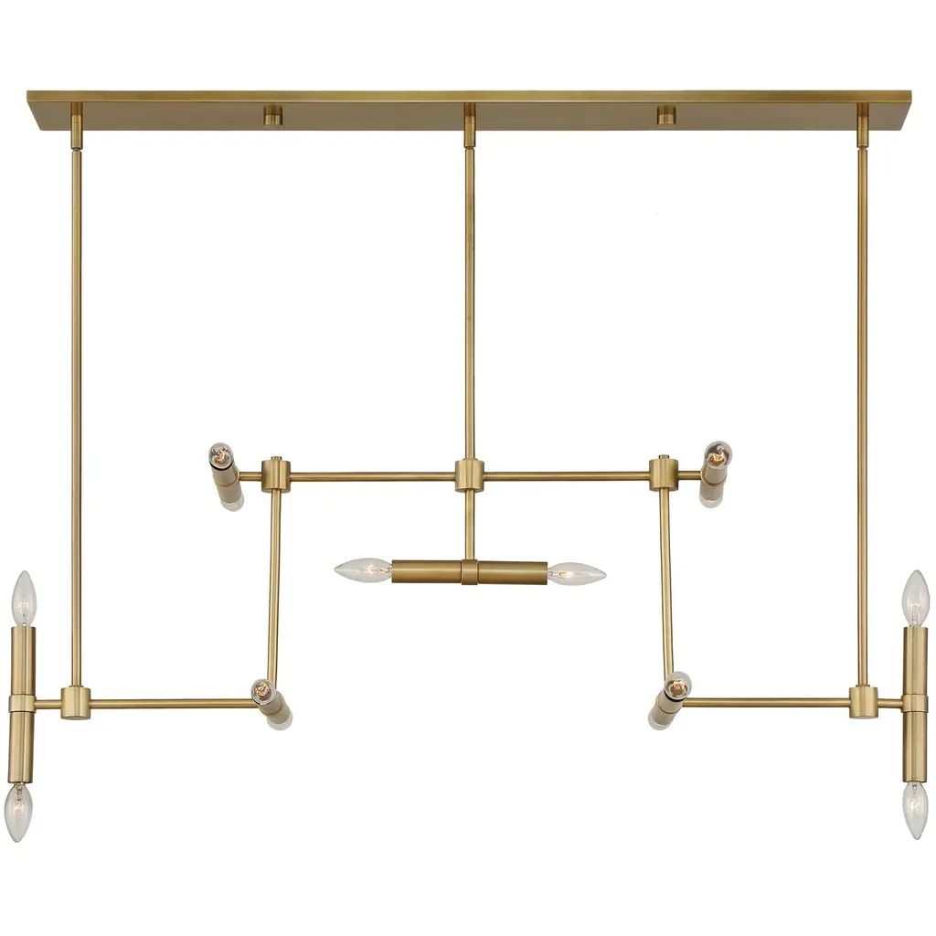 An Over-sized Framework Structure In A Clean Linear Pattern Gives Us This Unique Pendant In An Antique Brass Finish. 14-25 Watt Max Candelabra Sockets. Bulbs Not Included. Supplied With 15' Wire, 9-12" Stems And 3-6" Stem For Adjustable Installation.