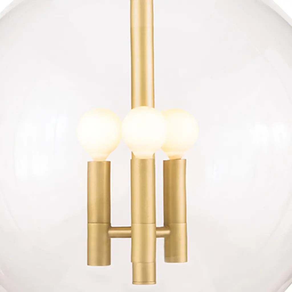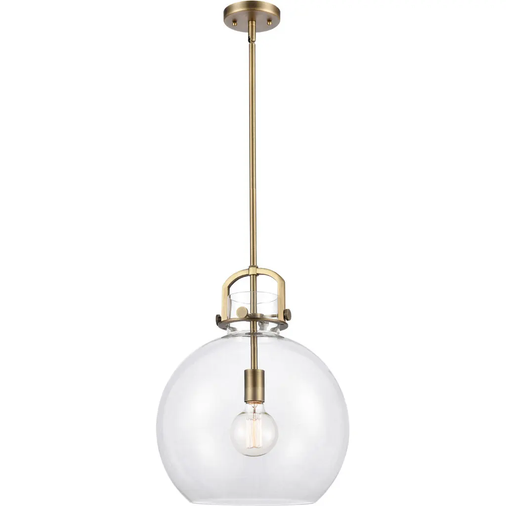 The clear glass shade of the Cafe Pendant acts as a barely-there surround on the metal rod, column, and arms. The metal cap adds a refined finishing detail. Install this pendant in a kitchen or dining room for unobstructed illumination.