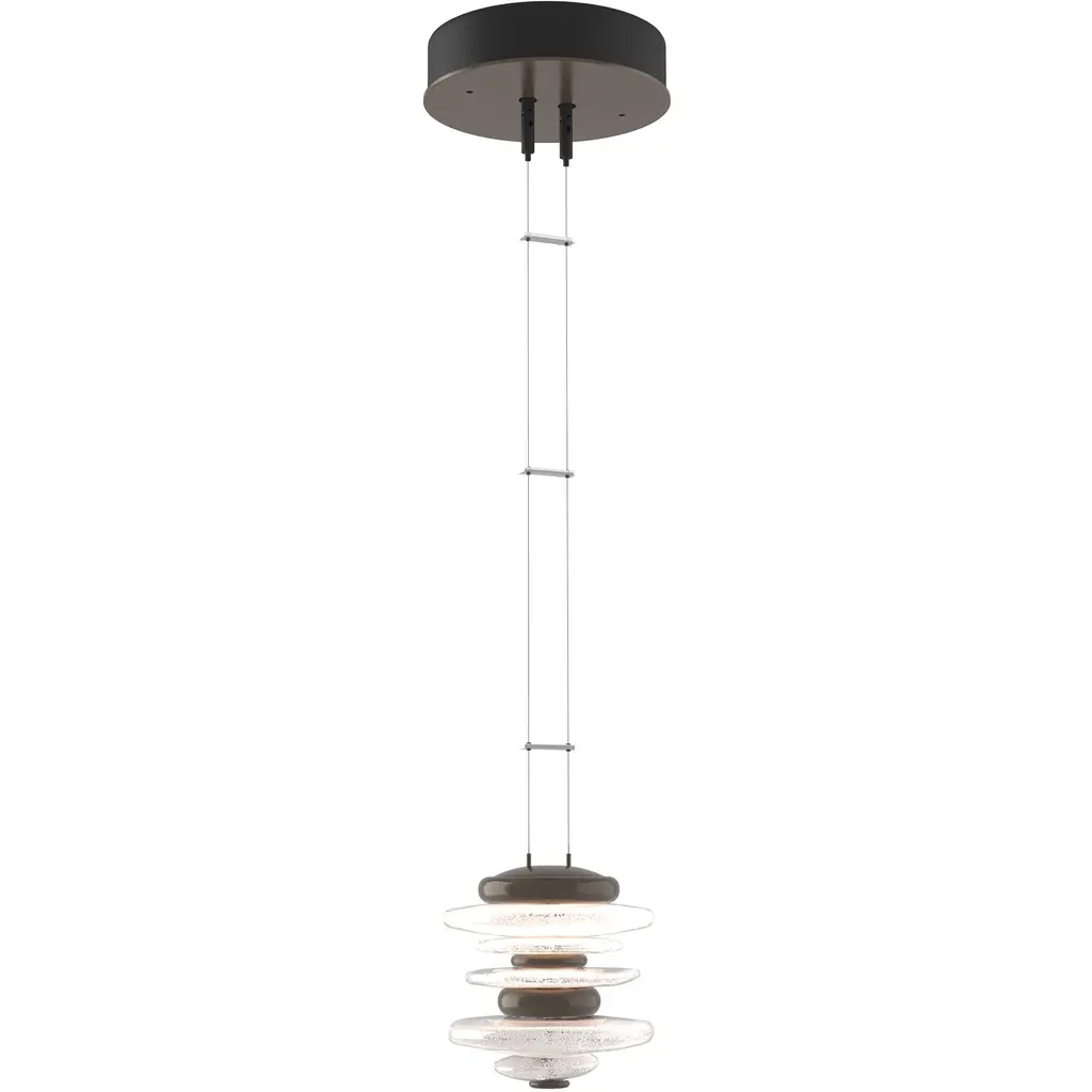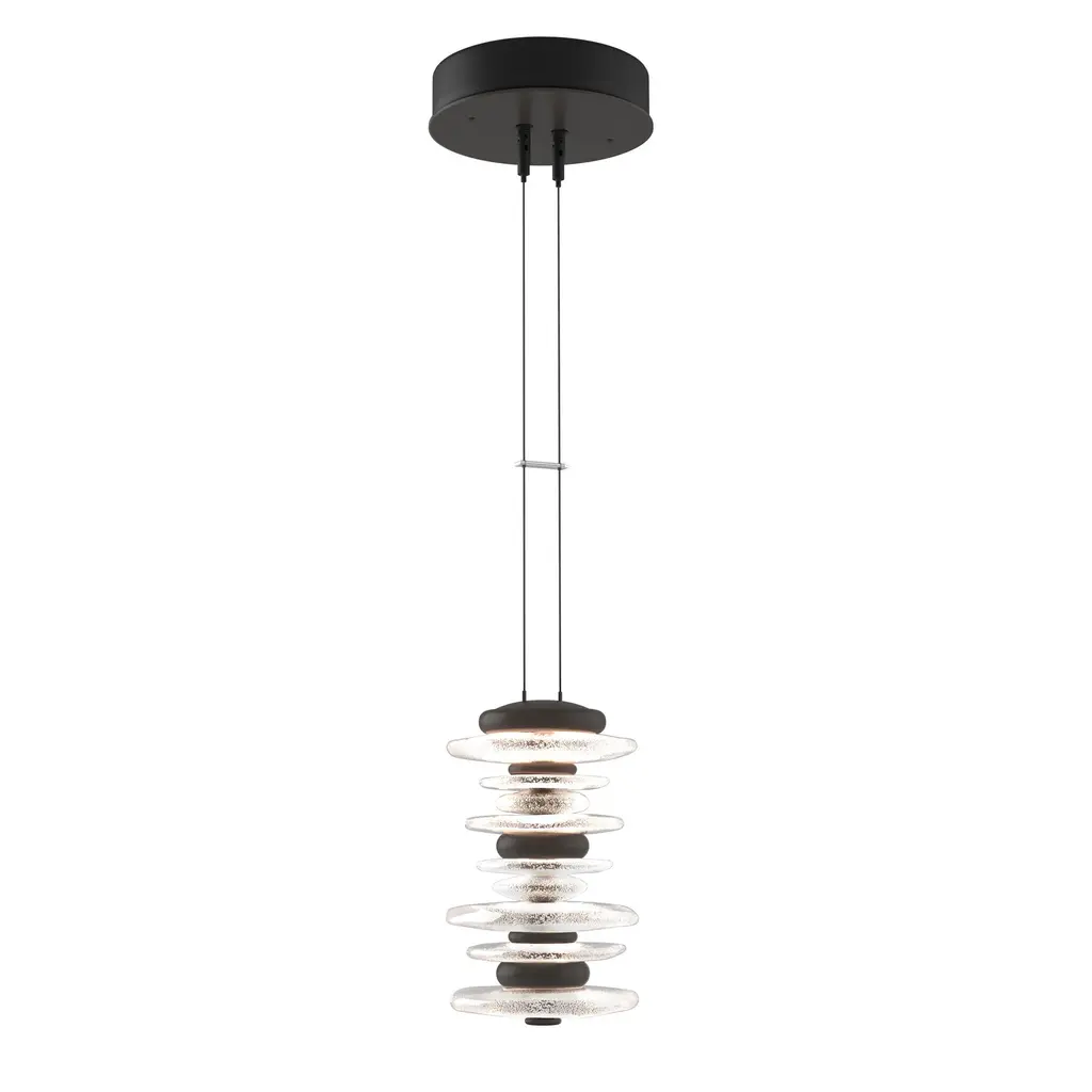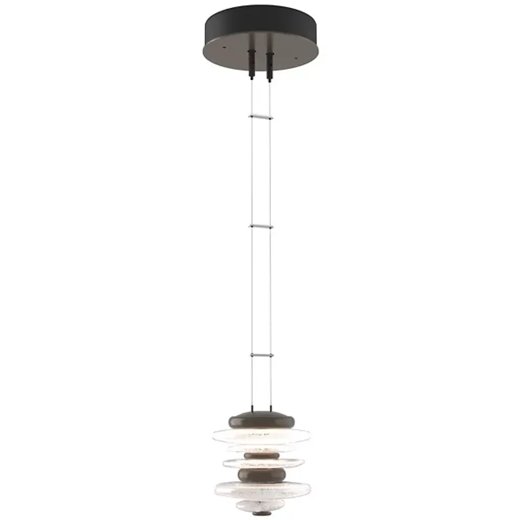 The Cairn LED Mini Pendant from Hubbardton Forge exudes delicate beauty and a calming presence. Its structure is made to look like a pile of stones gently stacked upon each other, but in reality, are made from thick hand-poured Glass and Cast-steel, supported by thin cables. Light is protruded downwards from the top, jumping over the Steel, giving the appearance of the Glass illuminating from within. Each part from this fixture is hand-crafted by skilled artisans in the United States.