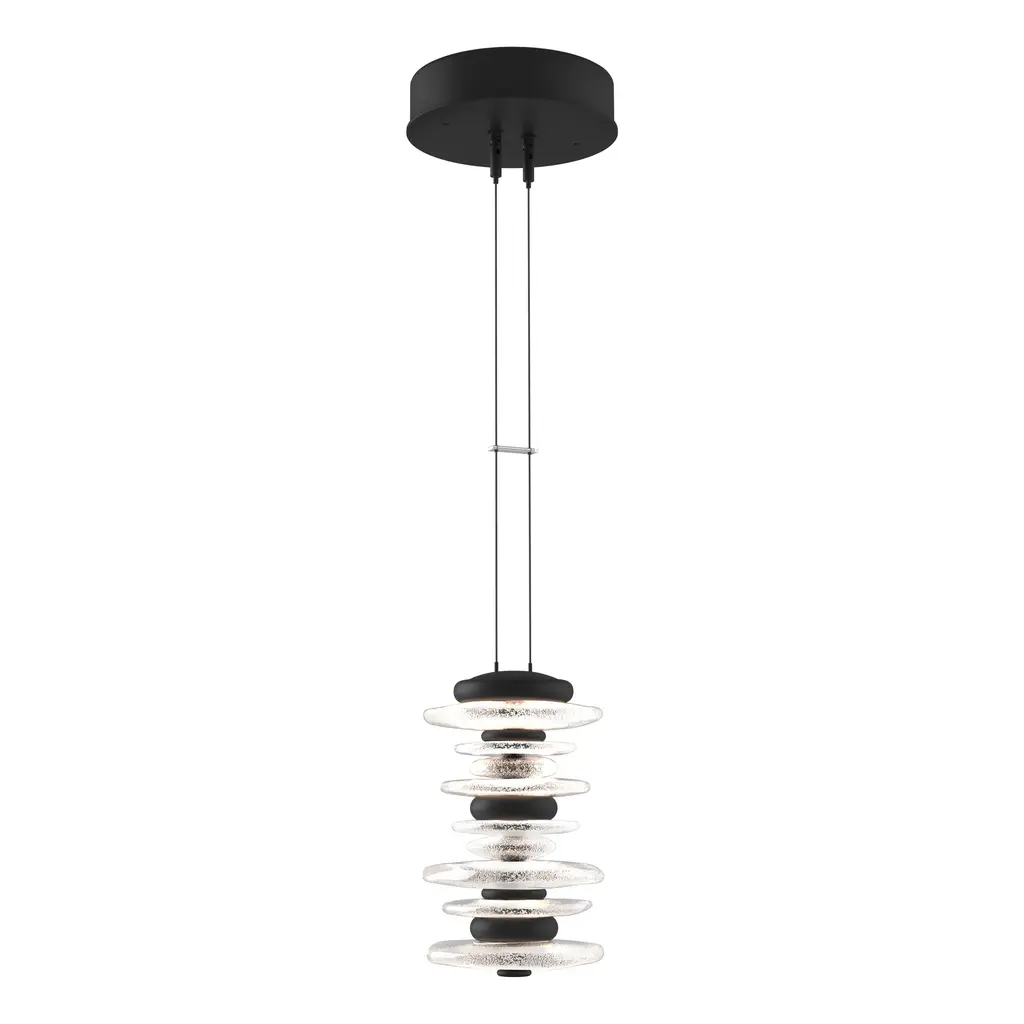 The Hubbardton Forge Cairn Pendant pays homage to the enigmatic stone sculptures, used since ancient times as landmarks. Thick hand-poured glass and cast steel “stones” are artistically stacked, and suspended by thin cables, creating a stunning illumination. Light flows over the steel and through the glass to seemingly glow from the inside. Adjustable cable-hung low-voltage LED mini pendant with glass and steel accents. Choose a finish for the decorative steel stones and the canopy faceplate. The upper canopy can will always be finished in black. Features