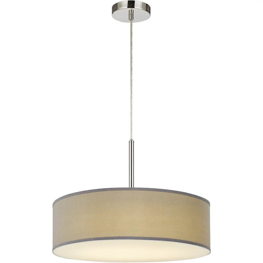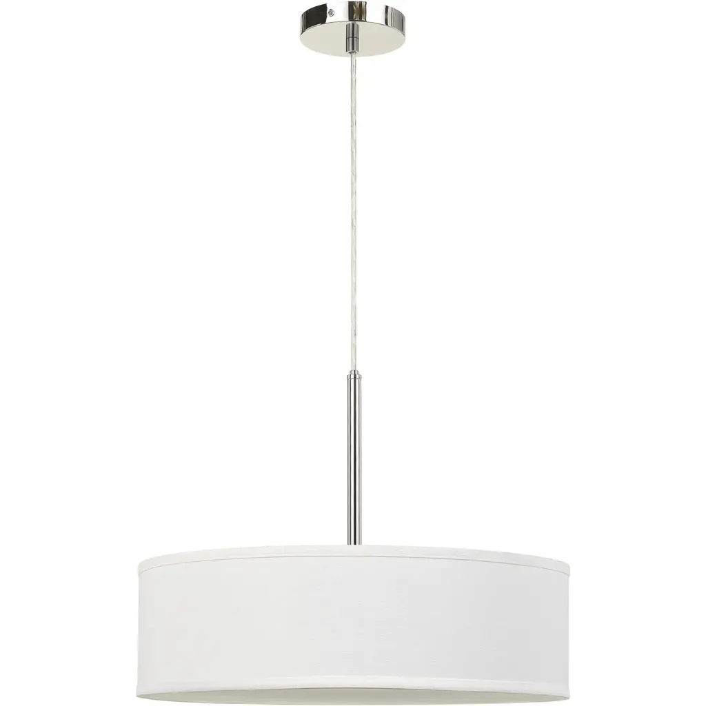 Update your space with this clean and simple led light fabric drum pendant. It ships complete with six feet of cord, acrylic diffuser and silver finish canopy plate. Its simple presentation makes it it a good fit with many different styles and décor.