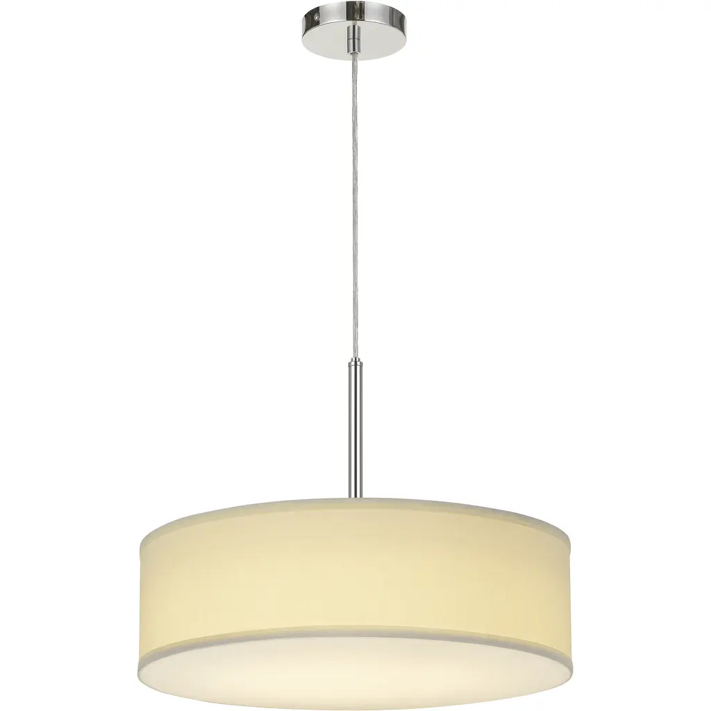 Update your space with this clean and simple led light fabric drum pendant. It ships complete with six feet of cord, acrylic diffuser and silver finish canopy plate. Its simple presentation makes it is a good fit with many different styles and décor.