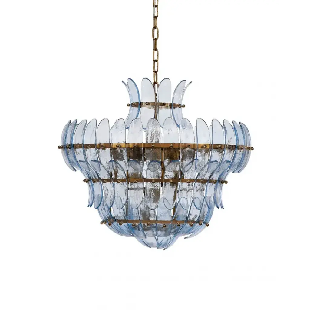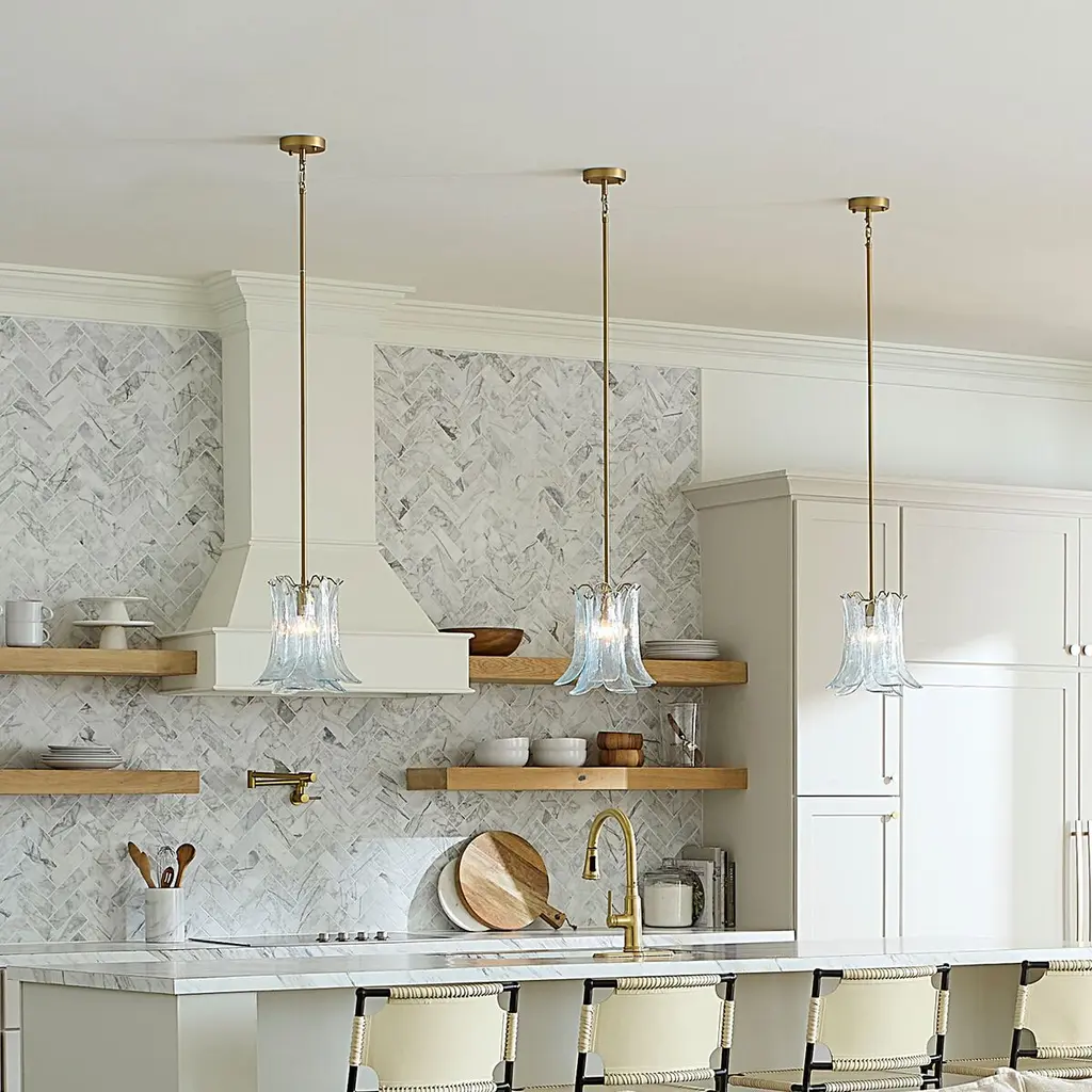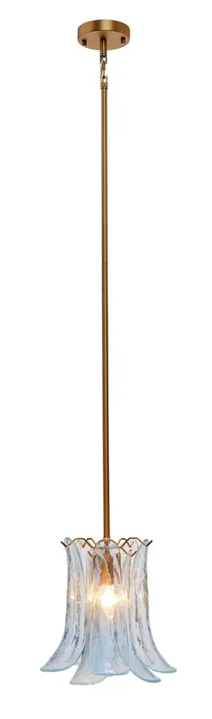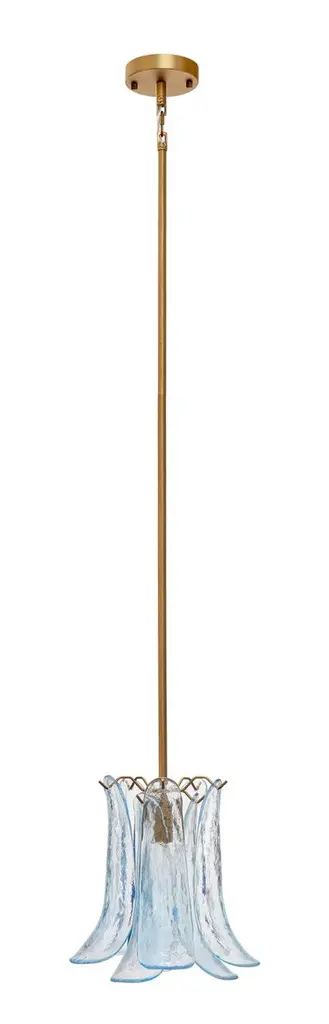The shades of these artisan-crafted pendants were inspired by the fields of calla lilies that bloom wild in Big Sur. Featuring gracefully curved leaves in glass rimmed with a touch of metal, they hang from an adjustable antique brass rod and canopy. Traditionally hung above a table or kitchen island, they offer endless display options if you have vaulted ceilings!