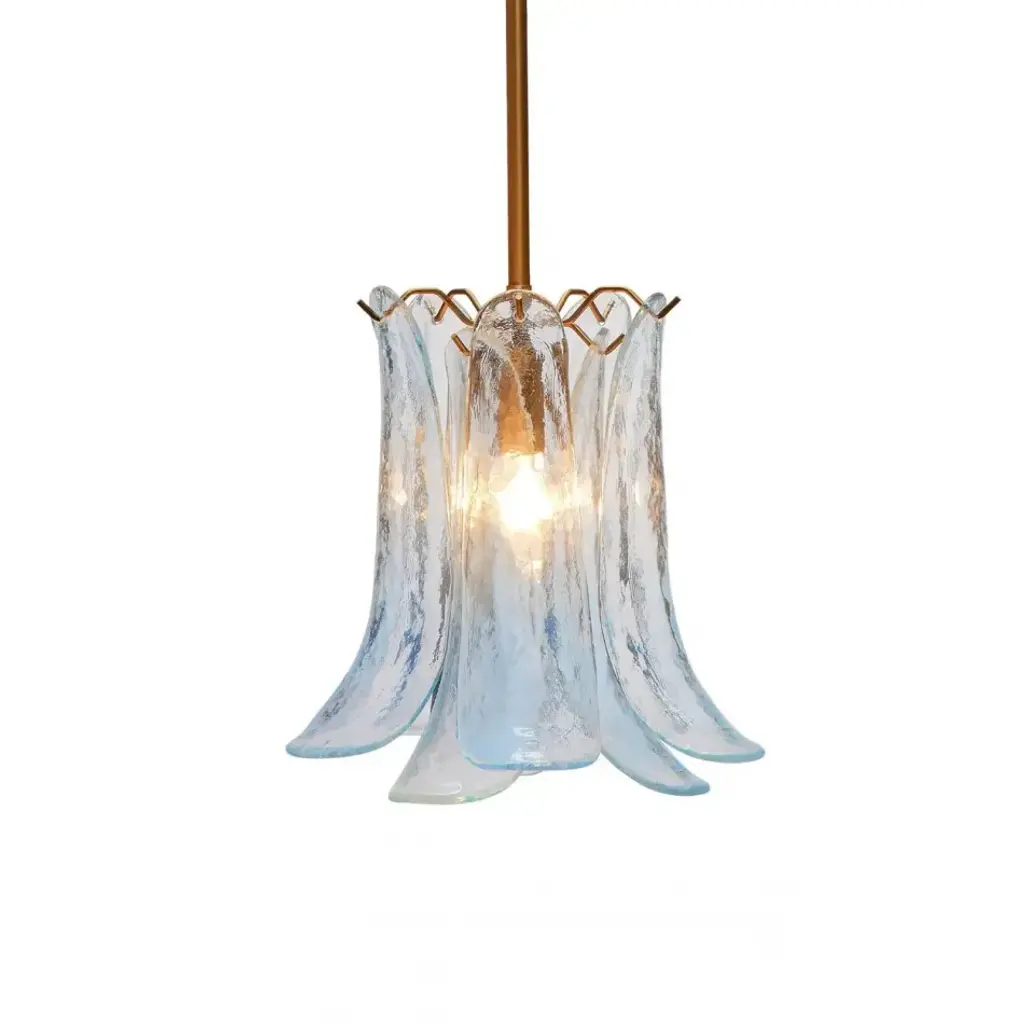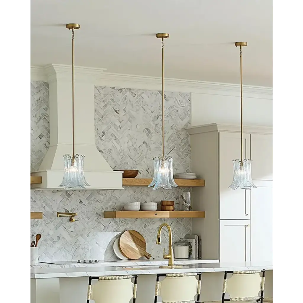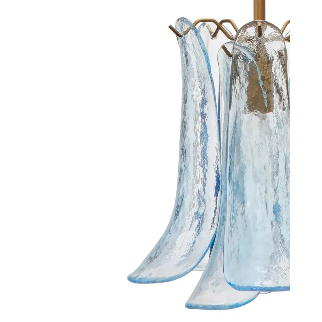 The shades of these artisan-crafted pendants were inspired by the fields of calla lilies that bloom wild in Big Sur. Featuring gracefully curved leaves in glass rimmed with a touch of metal, they hang from an adjustable antique brass rod and canopy. Traditionally hung above a table or kitchen island, they offer endless display options if you have vaulted ceilings!
